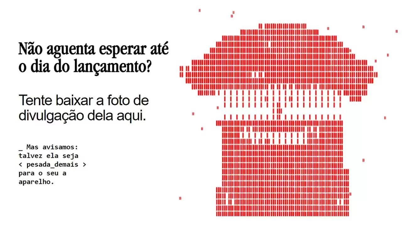 La idea de la campaña de New Balance y São Paulo es mostrar que el archivo del nuevo uniforme pesa tanto como la historia y la camiseta del club. Lo que hace que la foto se vuelva imposible de descargar, además de una altísima resolución, la imágen de la camiseta contiene toda la historia de Tricolor en sus metadatos. Son todos los años de historia del club, 93 años, contenidos en la imagen, incluyendo la fundación, estadísticas, máximos goleadores, alineaciones de cada año y episodios destacados.