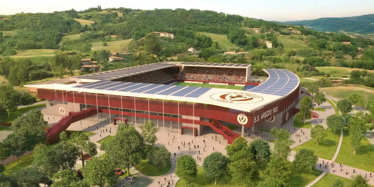 El primer club que activó esta ley es el Arezzo, club de la tercera división italiana, que presentó recientemente su proyecto para su nuevo estadio, que fue aprobado en un plazo de 59 días. La instalación, cuya finalización está prevista para 2030, contará con espacio para 12.500 espectadores, está inspirada en los estadios ingleses, minimizando la distancia entre las gradas y el campo de juego. Con el nuevo estadio del club de Arezzo, se difunde en Italia la idea del estadio como espacio social para vivir cotidianamente, perfectamente integrado en el tejido urbano, más que como una instalación aislada para disfrutar sólo los días de partido. Se trata de un estadio que, al menos en la idea inicial, tendrá que ser multifuncional.