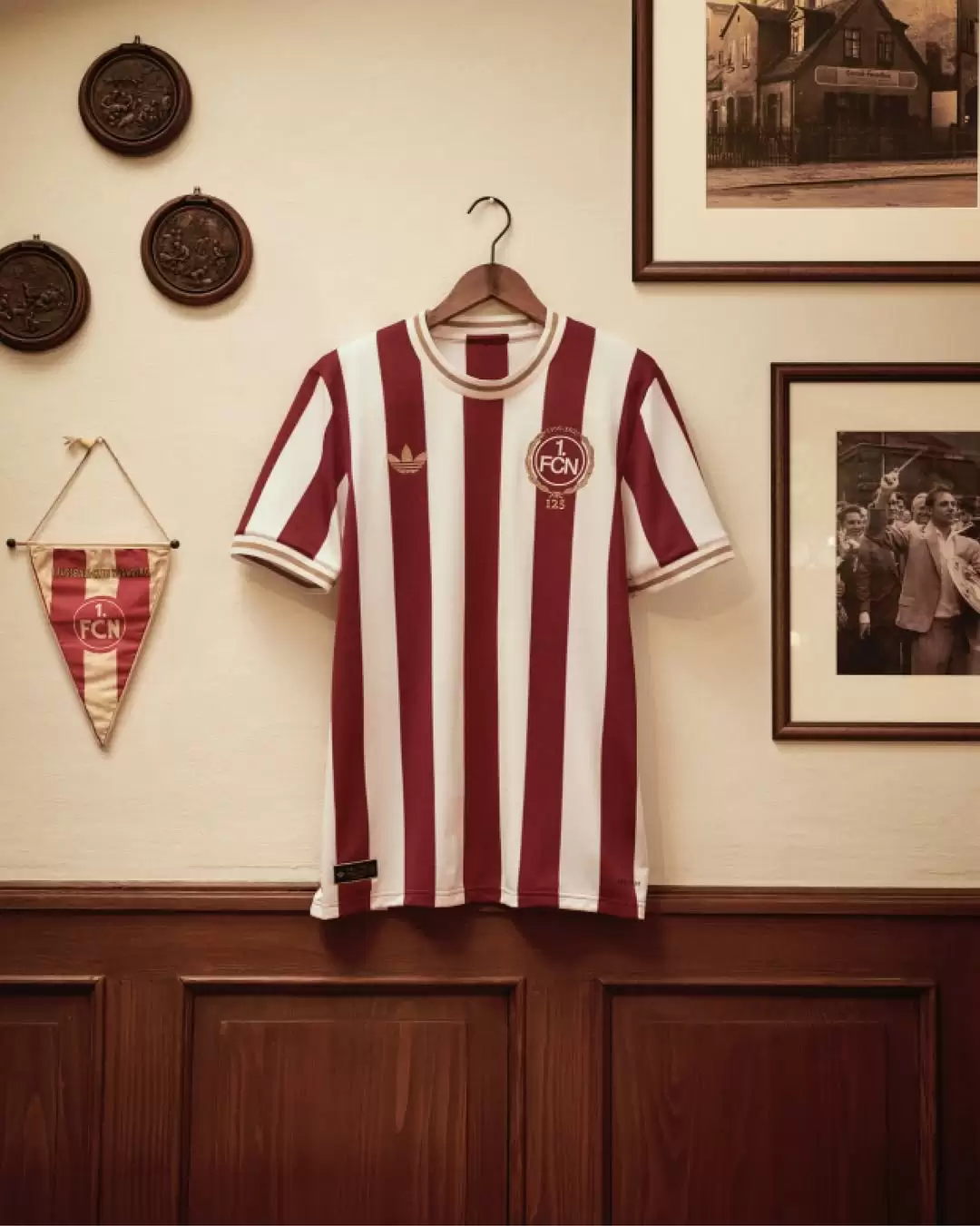 adidas sumó una nueva camiseta edición especial por un aniversario. Esta vez le tocó al Nuremberg. El lanzamiento rinde homenaje a la rica herencia del equipo de la Bundesliga 2, con los colores del club, rojo y blanco. El diseño a rayas rinde homenaje a una de las primeras equipaciones de Die Altmeister y está adornado con detalles dorados y una insignia de corona de laurel.