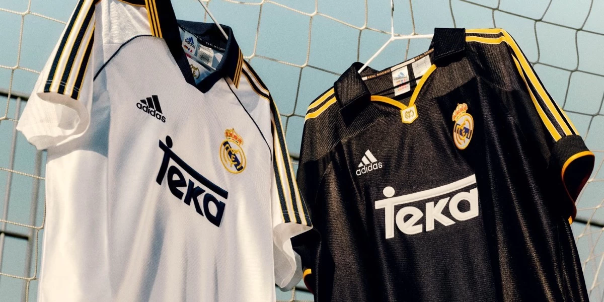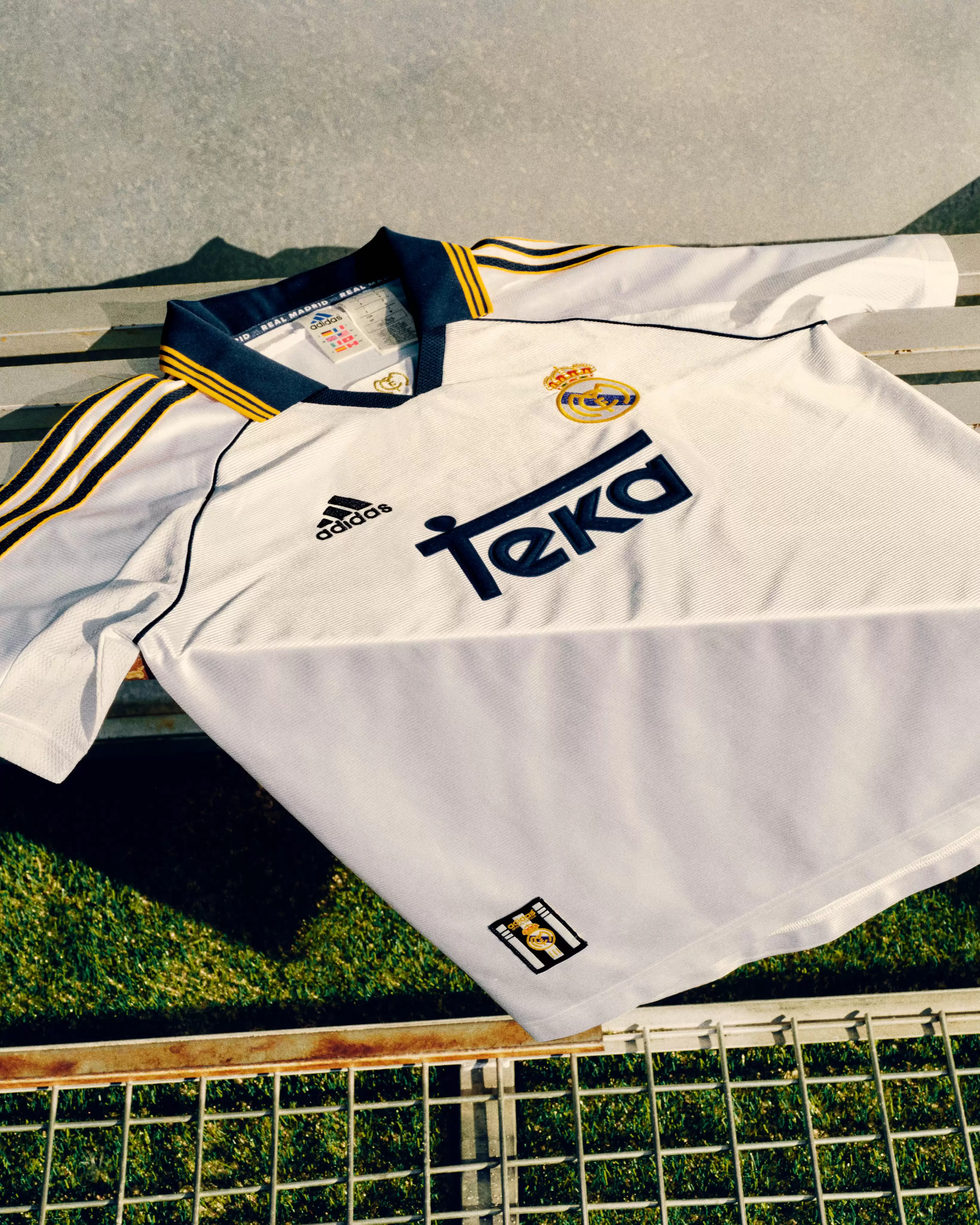La camiseta blanca de local se caracteriza por un cuello polo azul marino acentuado por tres franjas doradas (la misma combinación de colores se encuentra en las mangas) y lleva la inscripción "RMFC" en la parte delantera. La camiseta negra de visitante tiene una base completamente negra con dobladillos, puños y detalles dorados; ambas camisetas lucen el clásico patrocinador Teka en la parte delantera, mientras que en el pecho, por supuesto, lucen las tres franjas de adidas. Para el regreso de este clásico absoluto, adidas ha contado con leyendas del club como Guti, Marcelo, Fernando Morientes y otros, junto con figuras de las redes hinchas del Madrid como Delantero, DJ Mariio y Juan Bertheau.