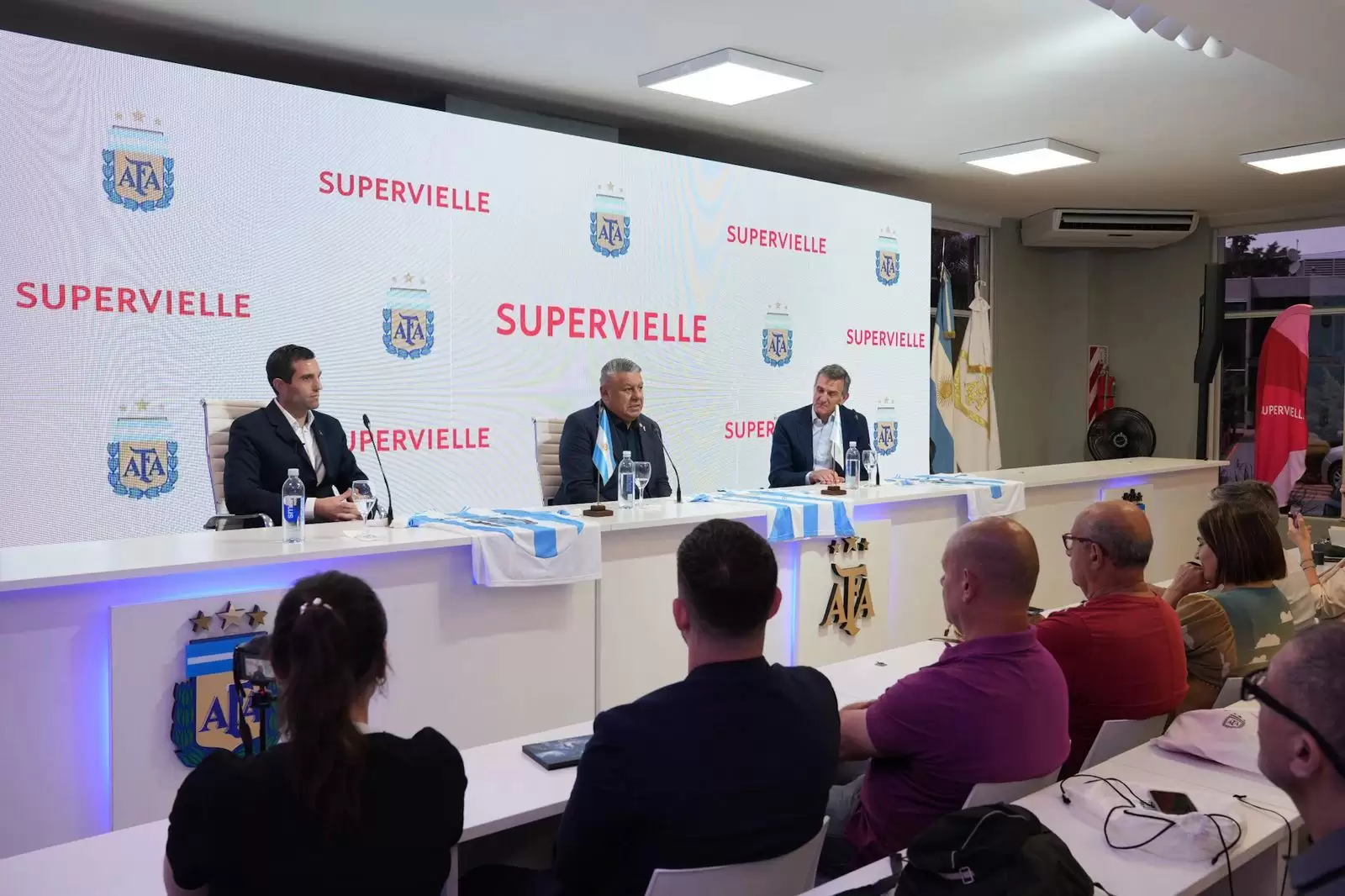 La presentación contó con la presencia del presidente de la AFA, Claudio Tapia; Leandro Petersen, Director Comercial y de Marketing de AFA; y Gustavo "Paco" Manriquez, CEO de Banco Supervielle, quienes resaltaron la importancia del vínculo y los valores compartidos entre ambas organizaciones. Claudio Tapia, Presidente de AFA, destacó: "Estamos muy contentos de anunciar un nuevo acuerdo comercial de nuestra Institución. AFA atraviesa un proceso de crecimiento de marca global sin precedentes, con presencia en todos los mercados y territorios, trabajando con marcas multinacionales líderes en los proyectos de Selecciones Nacionales, Liga Profesional, Consejo Federal y todo el Fútbol Argentino. Este acuerdo con una compañía de primer como Supervielle refuerza esta estrategia. Bienvenido Supervielle a la familia de los Campeones del Mundo y gracias por confiar en los proyectos de AFA".