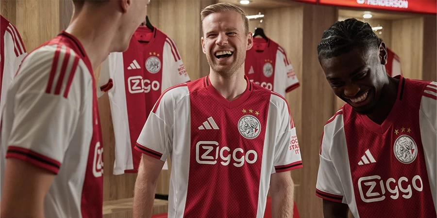 Ajax y adidas presentan la nueva equipación local 2025/2026. Esta es la primera equipación del Ajax que luce el escudo clásico, desde que se anunció su regreso. La camiseta rinde homenaje al 750.º aniversario de la ciudad de Ámsterdam. Un banderín se presenta como detalle en la parte superior trasera, con el año de fundación de Ámsterdam (1275), el año del aniversario (2025) y las icónicas tres cruces de San Andrés de la ciudad resaltadas. Además, las cruces se utilizaron para crear un llamativo patrón gráfico en la franja roja de la camiseta.