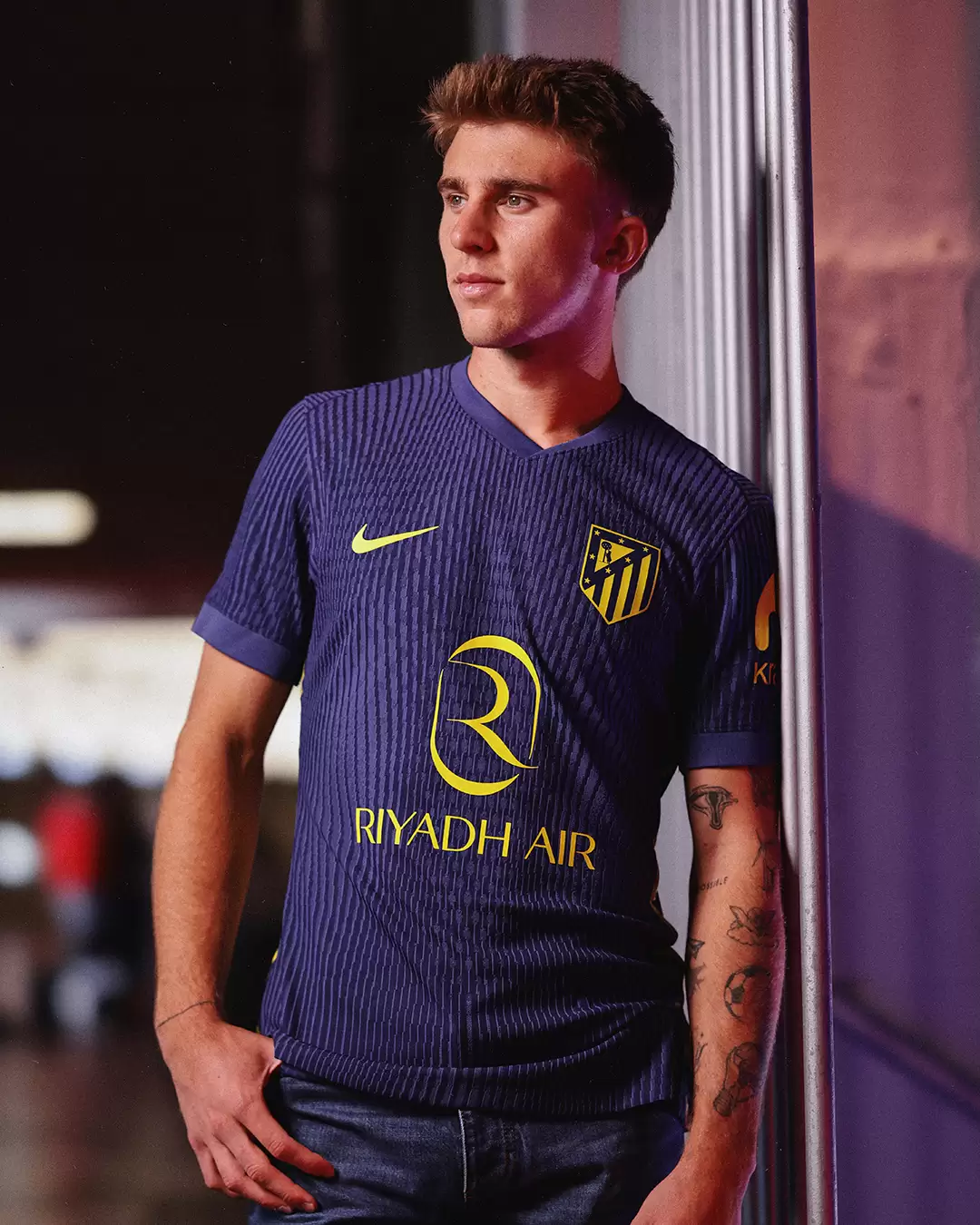 El diseño de rayos de la camiseta rinde homenaje a la icónica banda de rock AC/DC. Nike se inspira en su enérgico himno " Thunderstruck" , que suena a todo volumen por los altavoces antes de cada partido en el Riyadh Air Metropolitano.