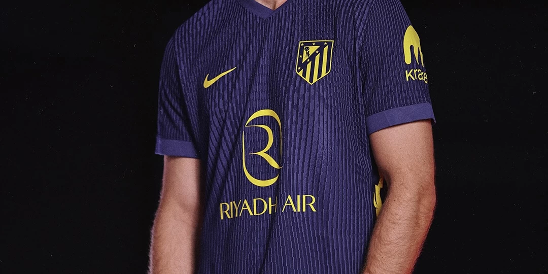 Para realzar su audaz diseño, el ribete exterior está adornado con rayos de color amarillo eléctrico. El mismo vibrante tono amarillo se utiliza para el escudo del club, el Nike Swoosh y los logotipos de los patrocinadores, todos con un elegante estilo monocromático. El look se completa con medias con un diseño de rayos entrelazados y un intrigante mensaje en el interior del cuello: ADVERTENCIA: ATLETI - SIN VUELTA ATRÁS.