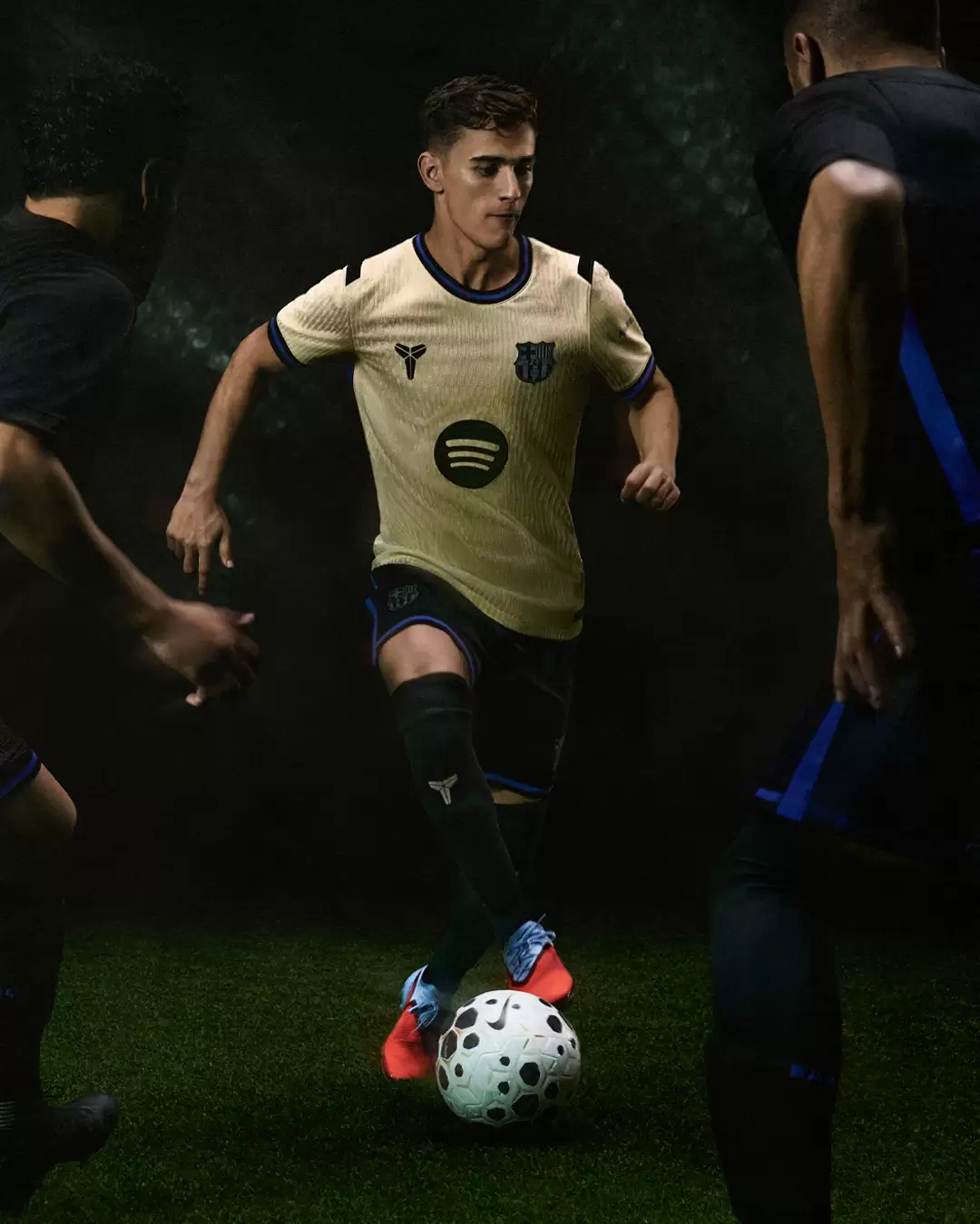 El lanzamiento de la equipación se presentó mediante un vídeo conceptual inspirado en el tradicional ejercicio de entrenamiento "rondo", parte esencial de la filosofía de juego del Barça. Esta dinámica representa la búsqueda de la excelencia técnica y mental, en consonancia con la mentalidad competitiva que Bryant personificaba. El vídeo presenta a atletas como Alejandro Balde, Alexia Putellas, Gavi, Claudia Pina, Frenkie de Jong, Patri Guijarro, Salma Paralluelo y Ewa Pajor. La propuesta conecta la esencia táctica del fútbol del Barcelona con la filosofía de superación personal de Kobe.