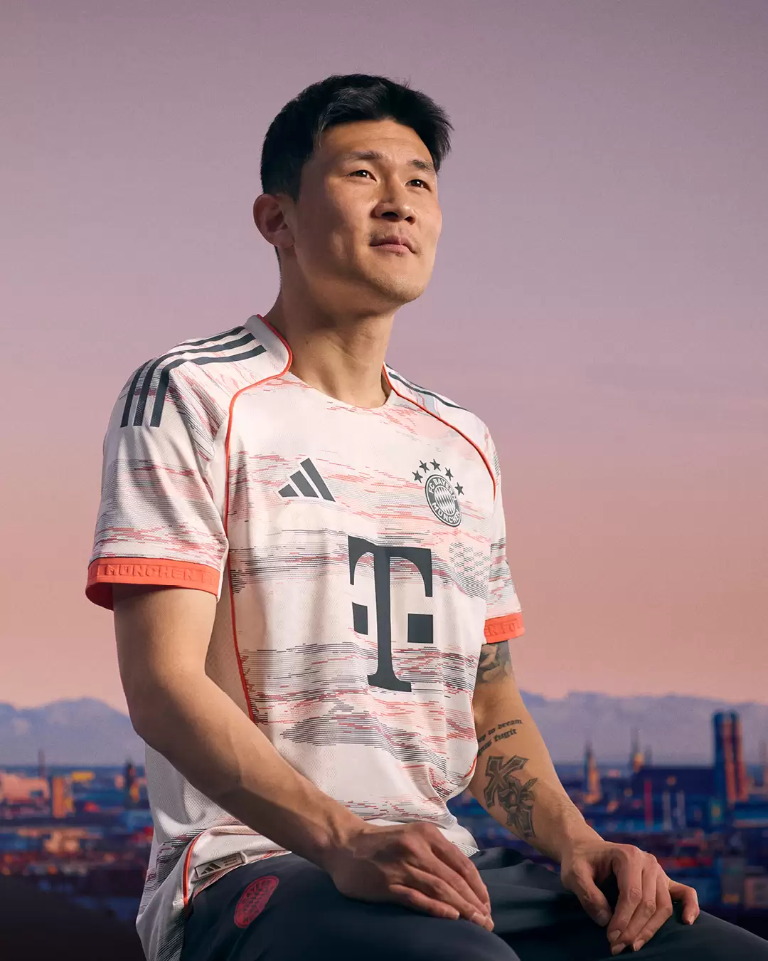 El Allianz Arena, que se inauguró en 2005, se ha convertido en un símbolo arquitectónico y cultural para los alemanes. El diseño de la camiseta está inspirada en las líneas luminosas y dinámicas de la parte exterior del Allianz Arena, con detalles esfumados en rosa y gris que recorren la base blanca de la casaca.