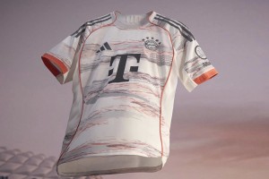 El Allianz Arena, que se inauguró en 2005, se ha convertido en un símbolo arquitectónico y cultural para los alemanes. El diseño de la camiseta está inspirada en las líneas luminosas y dinámicas de la parte exterior del Allianz Arena, con detalles esfumados en rosa y gris que recorren la base blanca de la casaca.