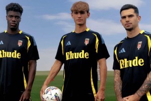 La camiseta se estrenó este viernes, en el último partido de la temporada 2024/25 contra el Inter. Confeccionada en negro con detalles dorados, luce la marca RHUDE. En la parte delantera, el monograma RHUDE aparece debajo del escudo de Como y el logotipo de adidas. En la espalda, el número 24 bajo la palabra COMO celebra el regreso del club a la Serie A. En la parte inferior, una declaración contundente: LAGO DE COMO – LOS ÁNGELES.