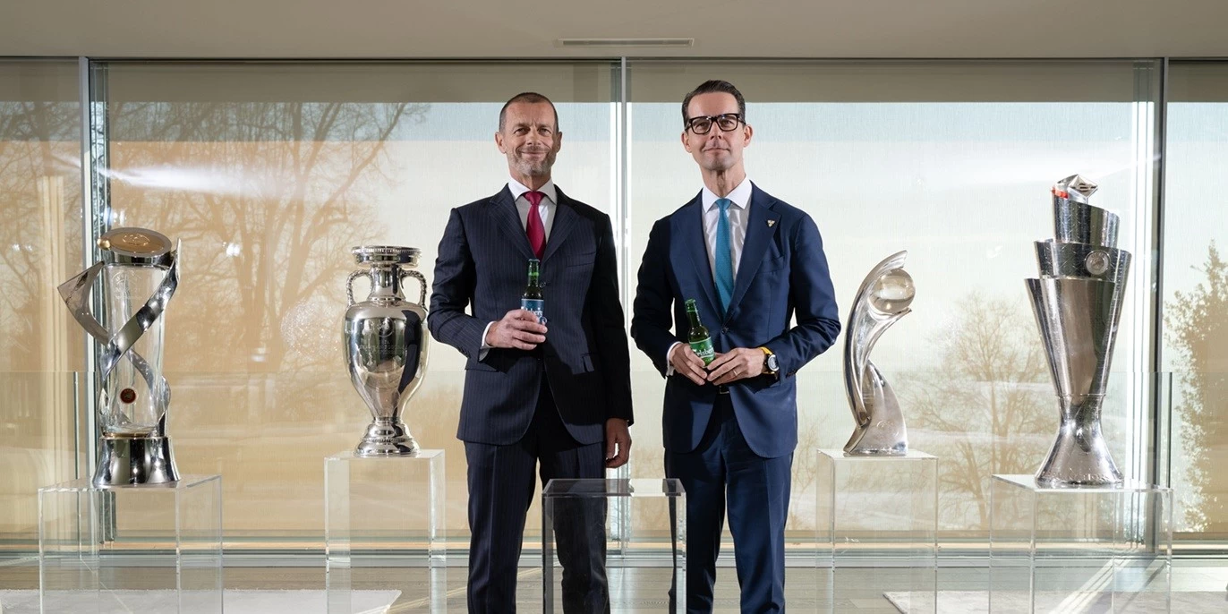 Carlsberg ha sido el socio histórico de la Uefa, con un contrato que estuvo vigente entre 1988 y 2016. Fue entonces cuando Heineken le arrebató el contrato. Heineken hasta entonces se había centrado únicamente en las competiciones de clubes, un contrato activo desde 1994 a través de Amstel y Heineken, y que estará vigente hasta 2027.