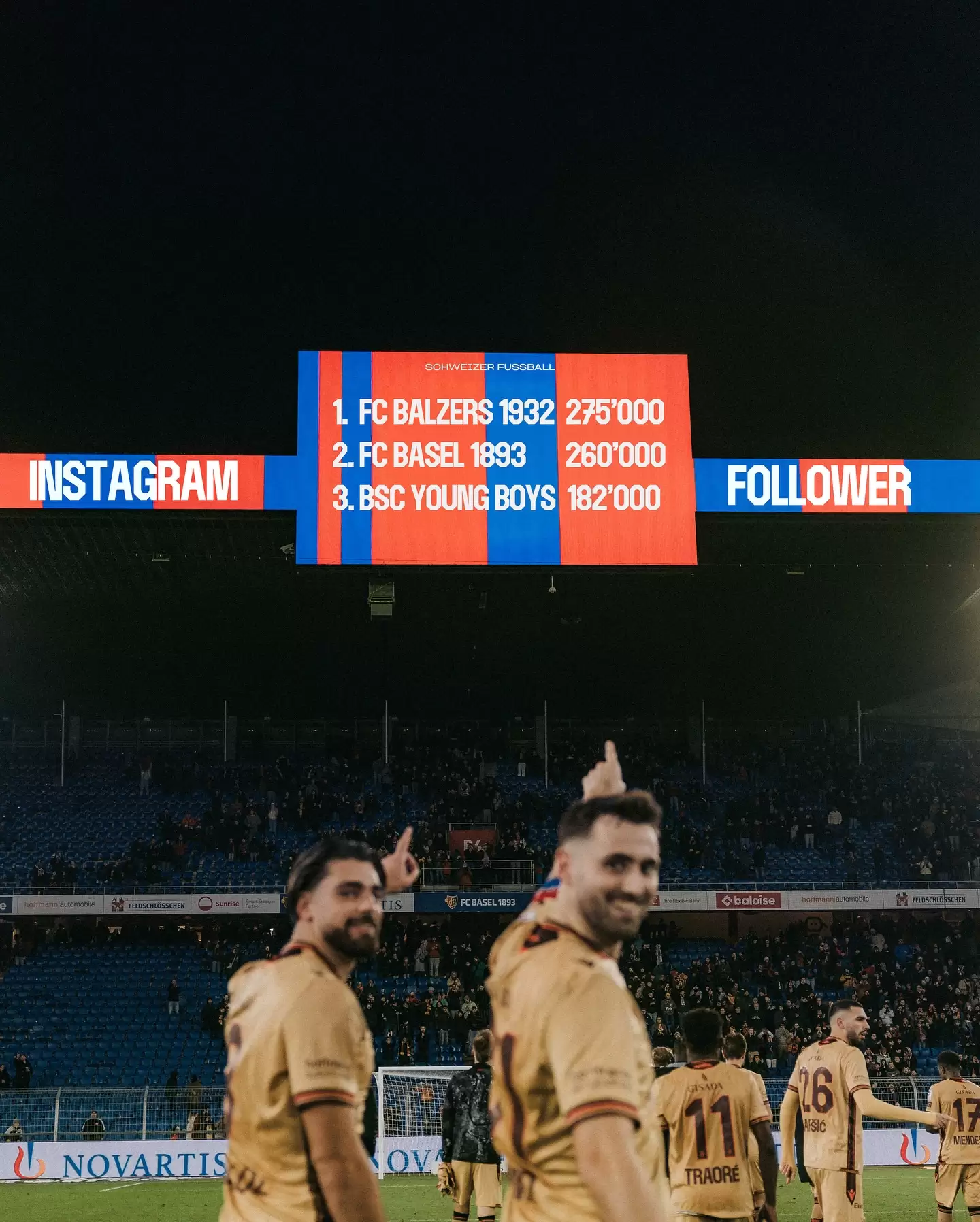El club realizó un posteo cuatro horas después de la viralización y tuvo 108.000 likes, y se trata de una nota en un diario de Liechtenstein en el que cuentan todo el movimiento. Luego, el propio Basel subió una publicaicón haciendo alusión a que el Balzers lo había superado en seguidores y tuvo 86 mil likes.