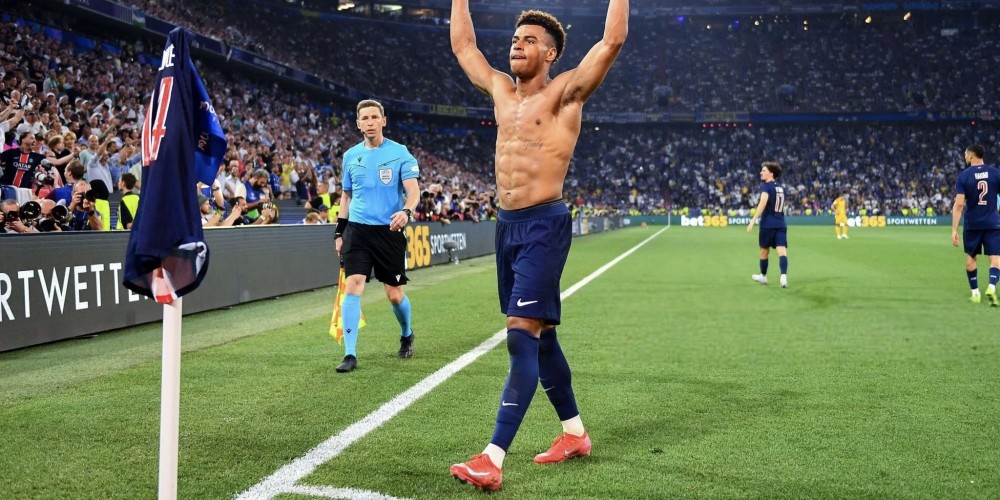 Désiré Doue, la estrella del PSG que convirtió un doblete en la final de la Champions League ante el Inter en la que el equipo de Luis Enrique goleó al Inter por 5-0, no tiene un patrocinador de botines, por lo que va variando según el partido.