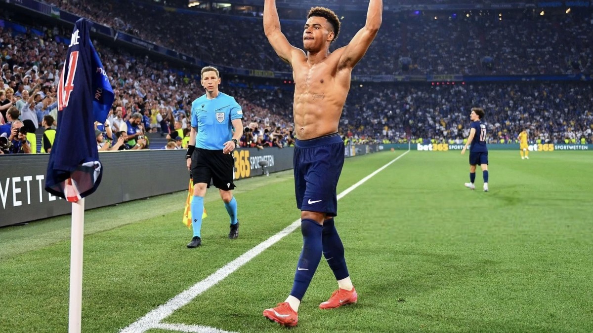 Désiré Doue, la estrella del PSG que convirtió un doblete en la final de la Champions League ante el Inter en la que el equipo de Luis Enrique goleó al Inter por 5-0, no tiene un patrocinador de botines, por lo que va variando según el partido.