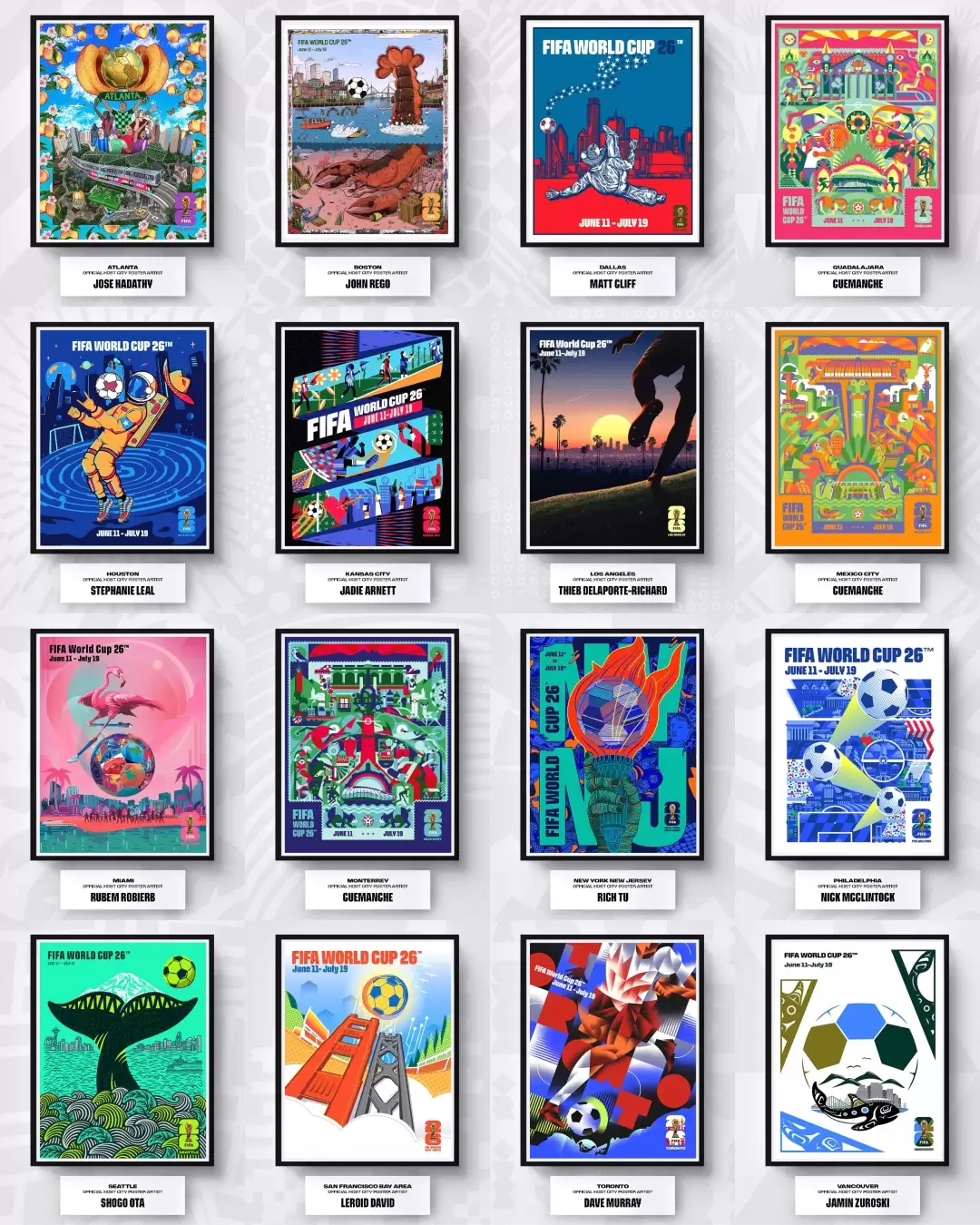 En el sitio web oficial de la FIFA se pueden verlos nombres de los artistas detrás de los carteles: desde Thieb Delaporte-Richard, artista 3D y exdirector artístico de Apple, quien creó el cartel de Los Ángeles, hasta Ruben Robierb, artista de instalaciones responsable del que representa a Miami. Una verdadera colección de obras de arte que hace historia, representando el primer conjunto oficial de carteles específicos de una ciudad creados para un Mundial.