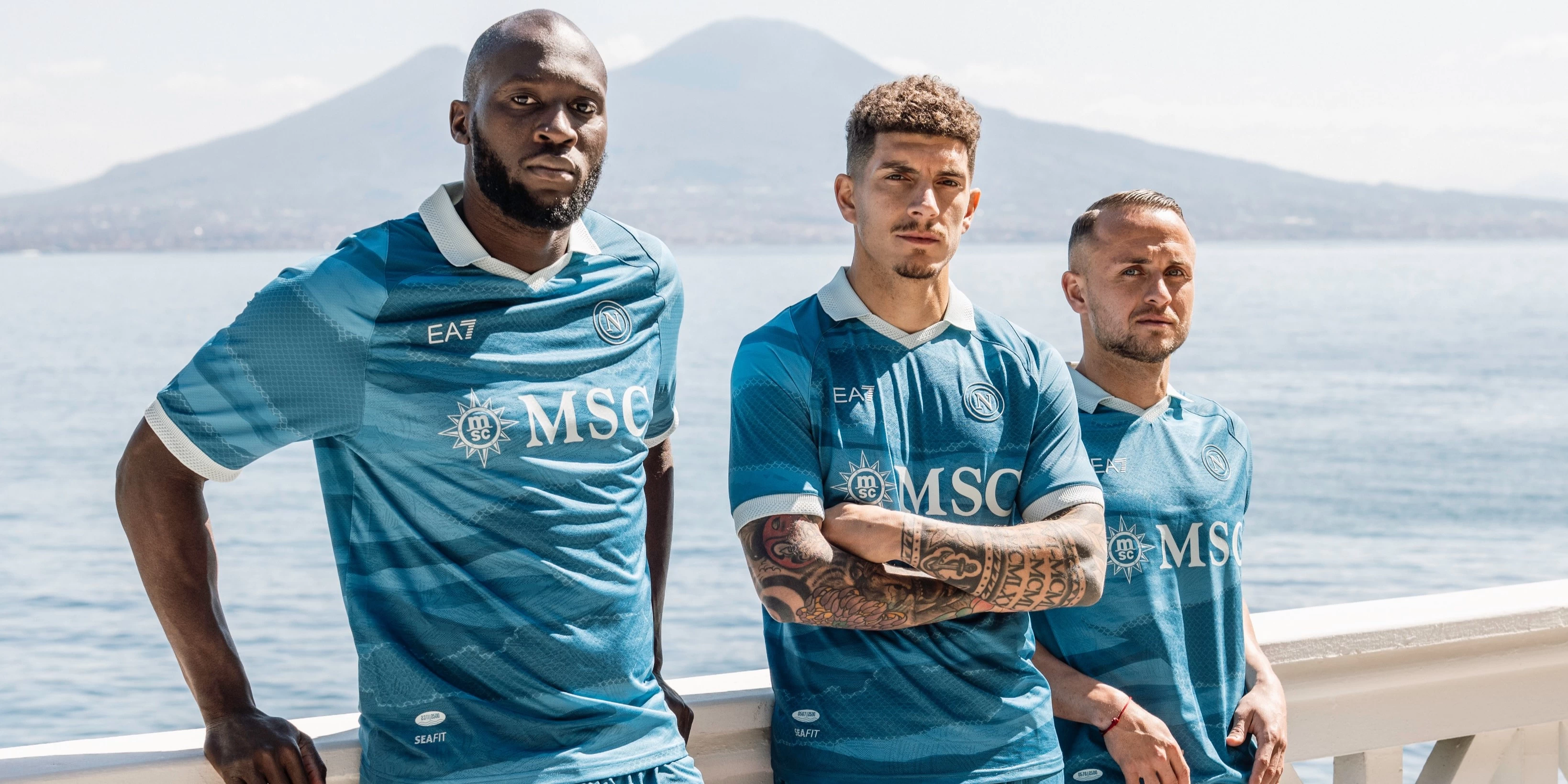 Napoli y EA7 lanzaron hoy la cuarta camiseta del club italiano para lo que queda de esta temporada. La camiseta se inspira en el mito de "Partenope", con un diseño que fusiona la ciudad y el mar. En colores azul cielo y turquesa claro, la camiseta se realza con detalles blancos y jacquard con estampado sublimado, ofreciendo un look de escamas que también se refleja en los dorsales.