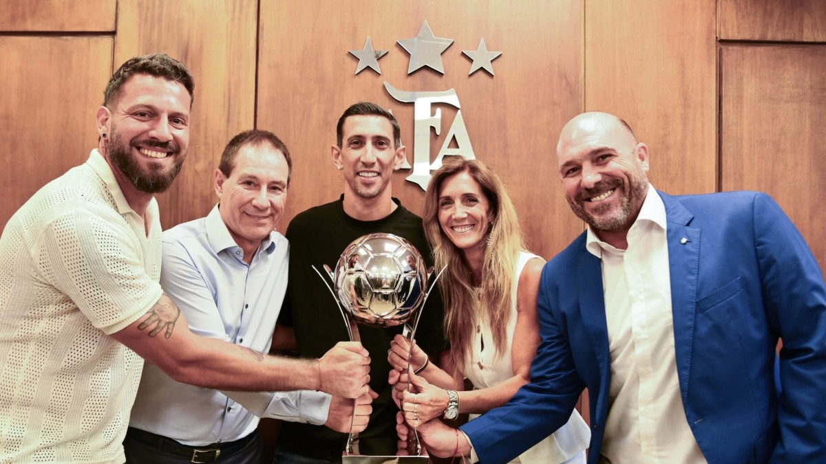 El arquero y capitán Jorge Broun, el director técnico Ariel Holan y el emblema Ángel Di María estuvieron presentes en la entrega del trofeo, en una reunión con representantes de la AFA que, según Belloso, fue “una sorpresa” porque el club se enteró de la entrega apenas la víspera.