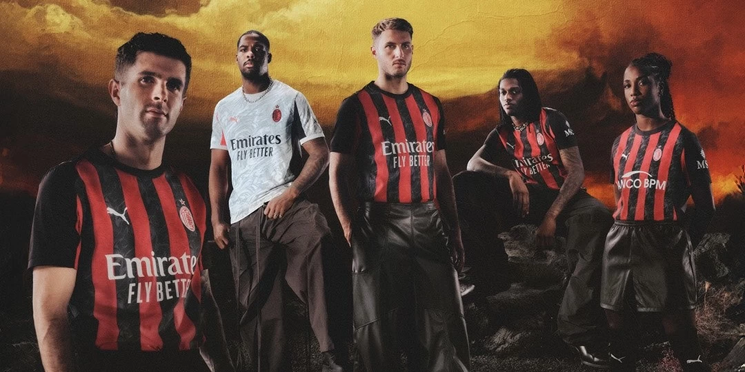 El Milan presentó su nueva camiseta titular para la temporada 2025/26. Diseñada por PUMA, la casaca presenta las tradicionales rayas verticales rojas y negras dispuestas en un patrón geométrico regular, con llamas que las atraviesan. Este diseño rinde homenaje al fundador del club, Herbert Kilpin, y a su lema: "Nuestros colores serán rojos como las llamas y negros para infundir miedo en nuestros oponentes" .