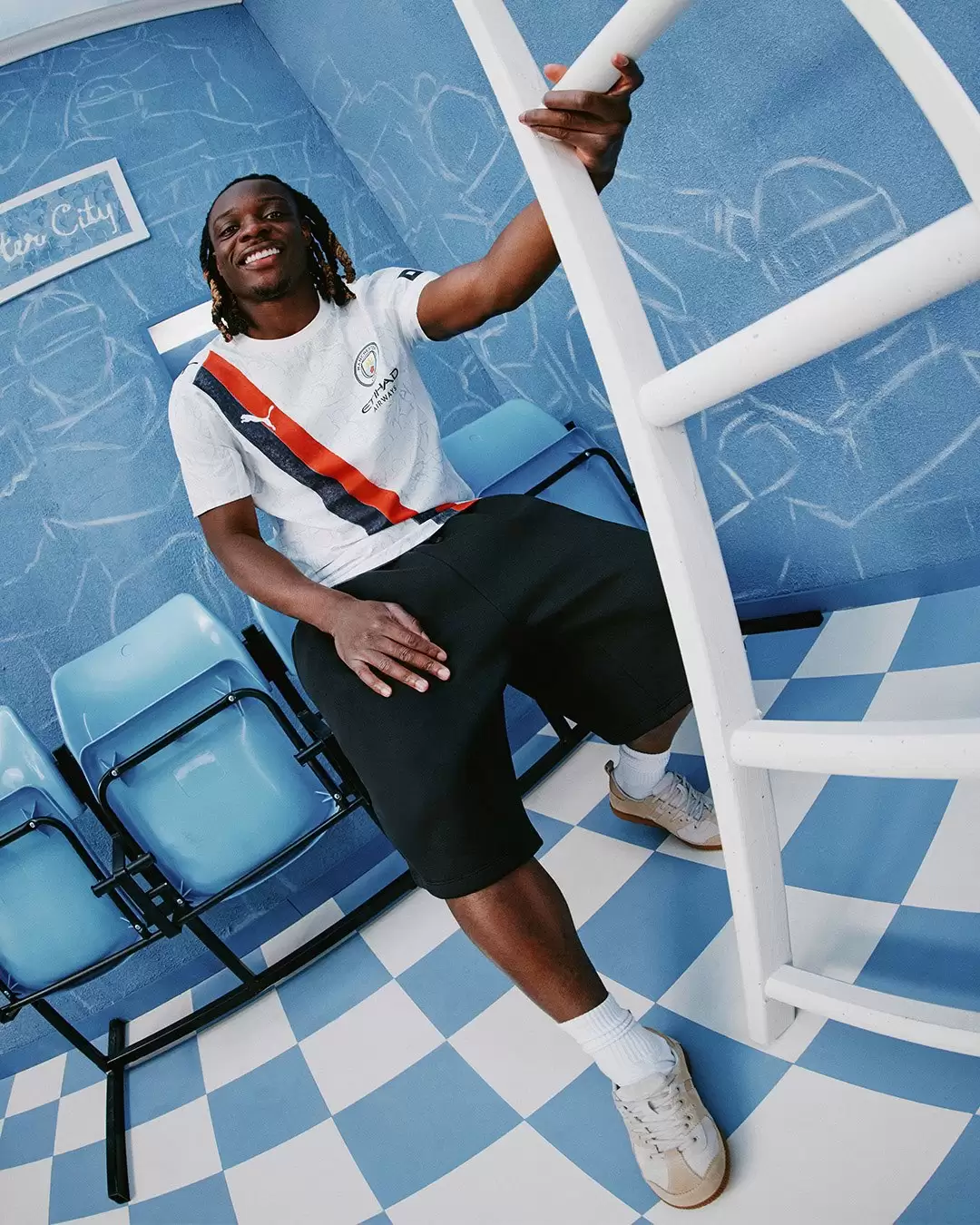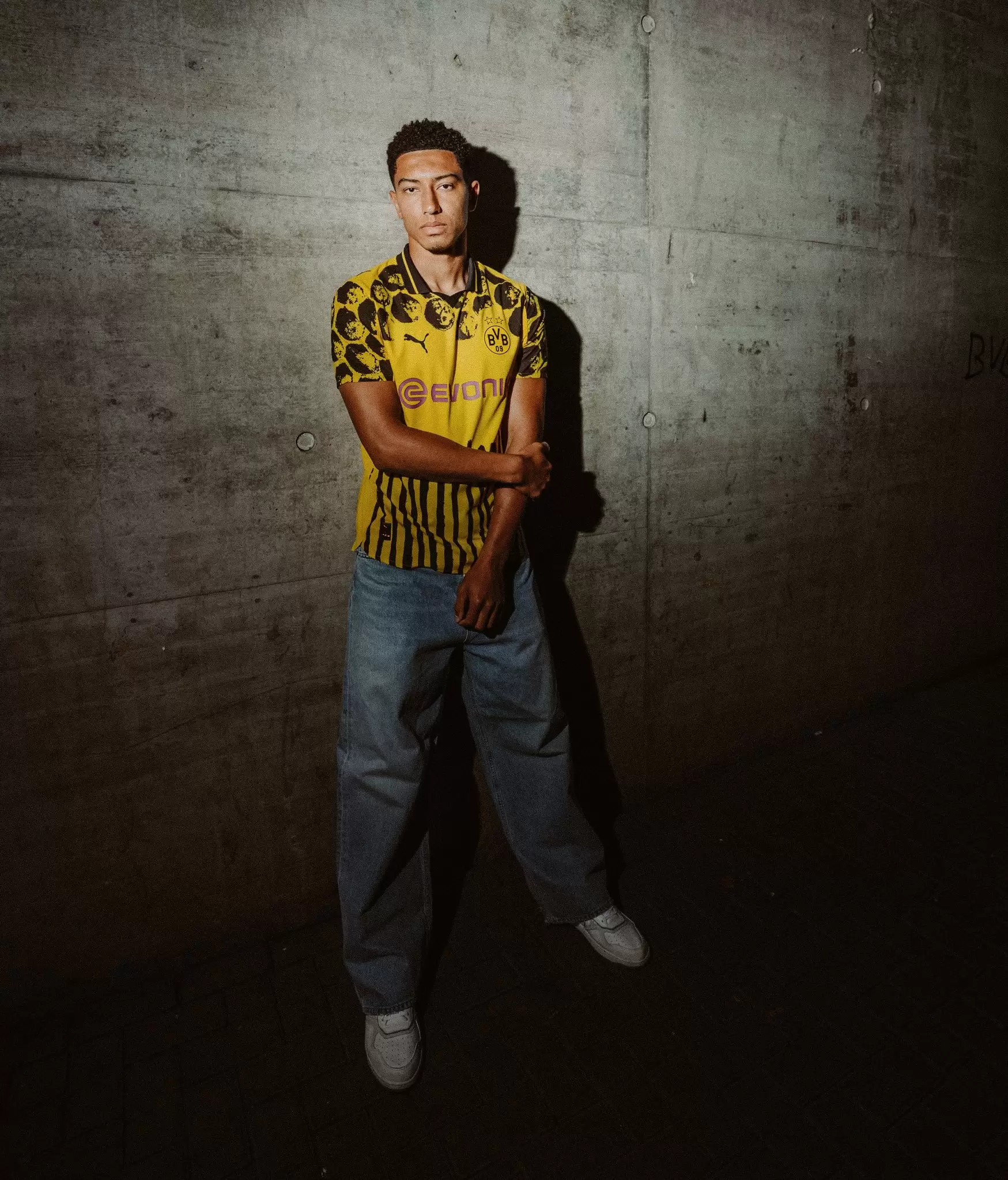 La equipación del Manchester City retoma el diseño clásico de la banda con la paleta de acuarela de KidSuper y detalles pintados a mano. El diseño captura el espíritu de Manchester y la emoción de la celebración de Poznań, ofreciendo una perspectiva fresca y artística de la apreciada equipación del City. La camiseta del Borussia Dortmund reúne a una hinchada apasionada con una visión moderna de la intersección del fútbol con la cultura pop, creando una equipación que rinde homenaje al pasado y adopta la audaz estética de KidSuper.