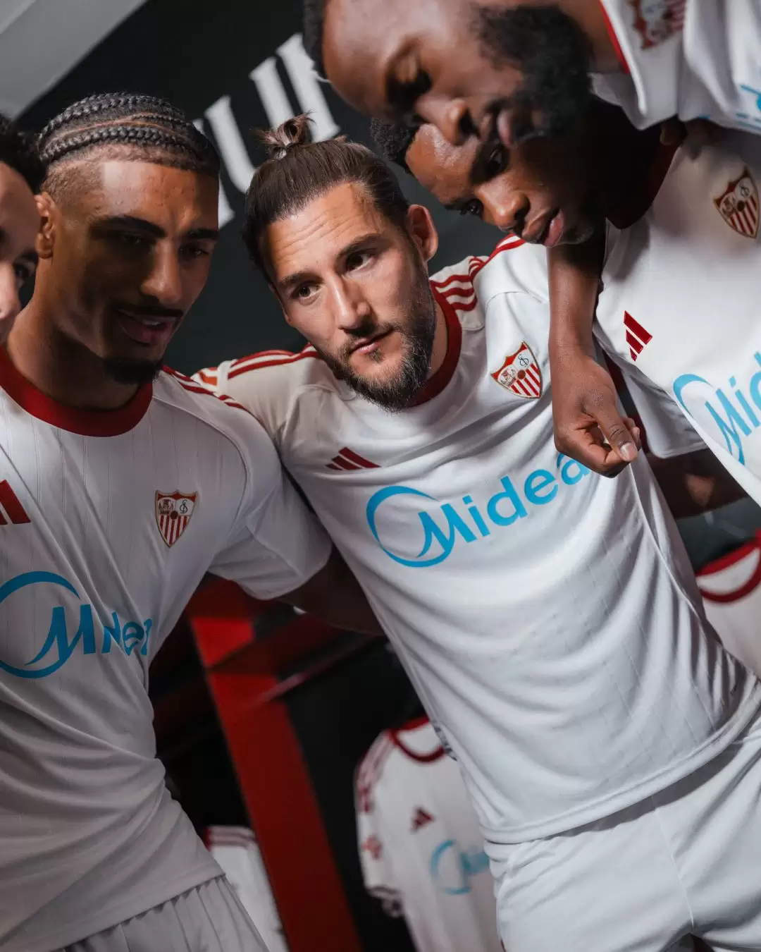 Algunos jugadores como Badé, Lukebakio o Juanlu, entre otros, posaron con la nueva camiseta para ser mostrada al público. “El blanco impoluto se combina con los detalles en rojo en homenaje a la pasión que late en Nervión, a los corazones que empujan desde la grada y a la historia escrita con casta, coraje y sentimiento”, detalla el Sevilla, que espera una gran acogida por parte de sus aficionados.