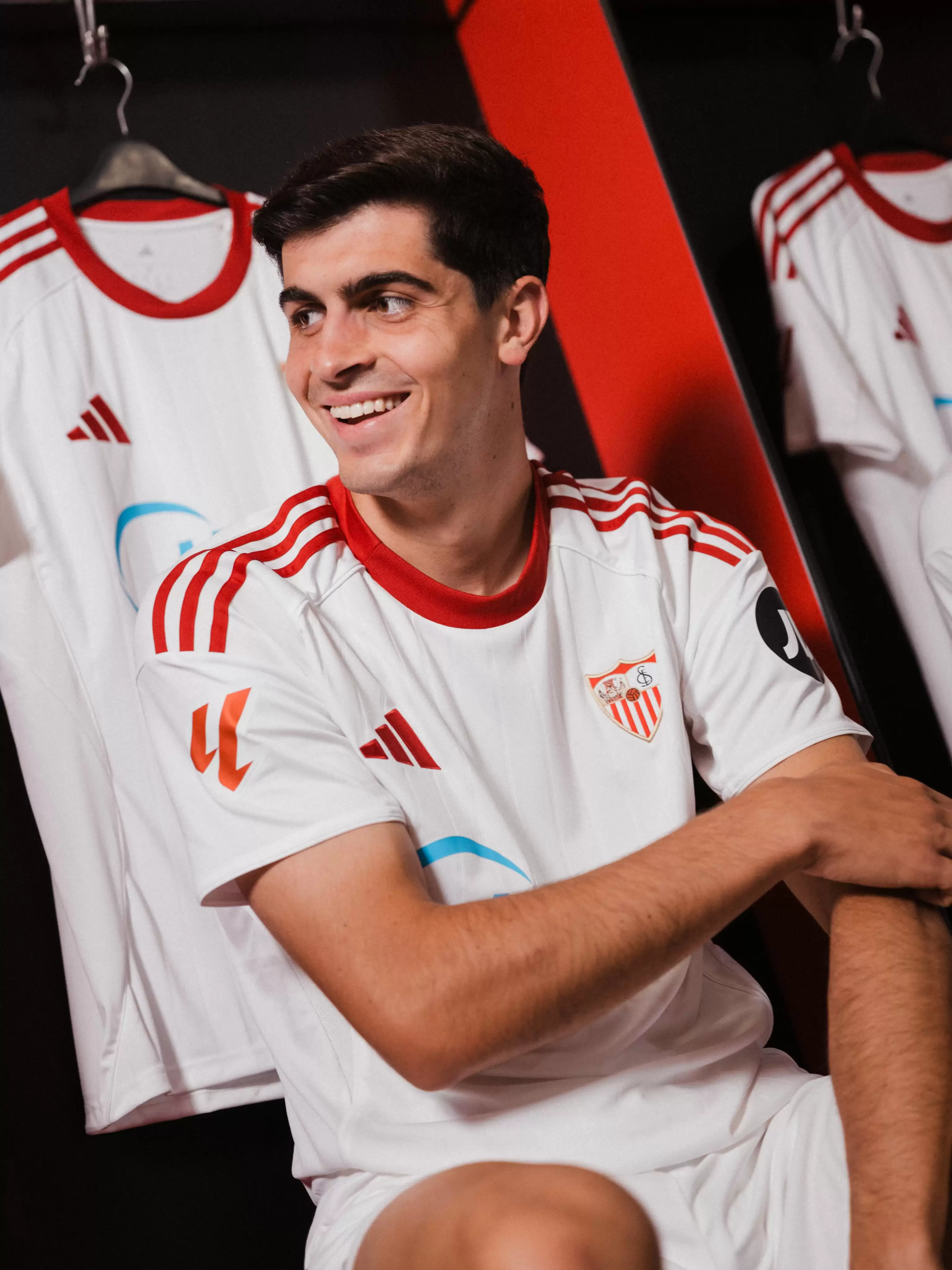 El propio club explicó: “Una camiseta elegante, con un blanco impoluto gobernando casi su totalidad, aderezada con el color rojo en las míticas rayas de la marca alemana sobre los hombros y sutilmente en el cuello. Inspirada en las recordadas camisetas blancas que marcaron una época en los años 70 y 80, esta nueva versión representa la esencia más pura del sevillismo, un blanco que simboliza el orgullo que desprende el Sevilla y su fuerte sentimiento de pertenencia".