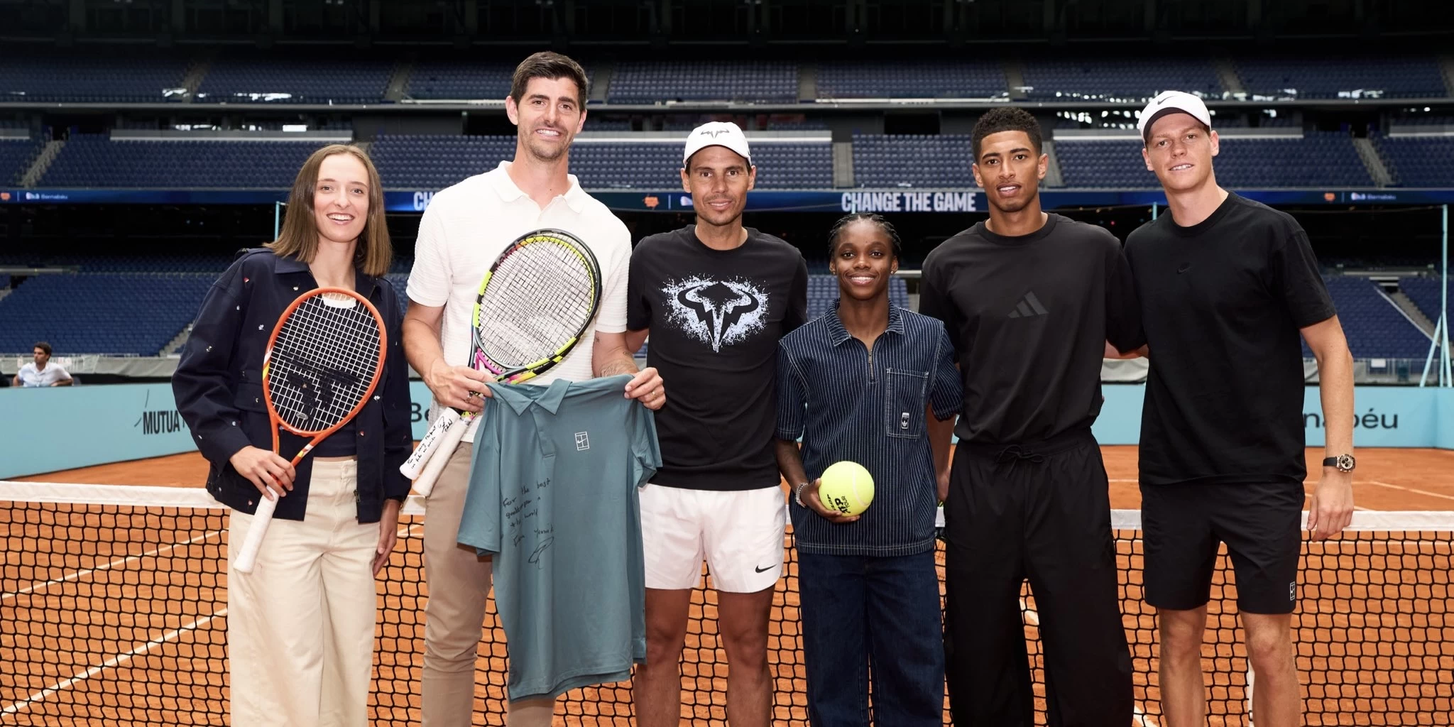 En ese breve encuentro se pudo ver a Rafael Nadal y Jannik Sinner compartiendo la cancha con Thibaut Courtois y Jude Bellingham, mientras Florentino Pérez actuaba como juez de silla. La postal, tan insólita como llamativa, rápidamente se viralizó tras haberse tomado luego del duelo liguero frente al Alavés. El Bernabéu, acostumbrado a recibir a 80.000 espectadores para partidos de fútbol, mostró así una faceta completamente distinta y recreativa.