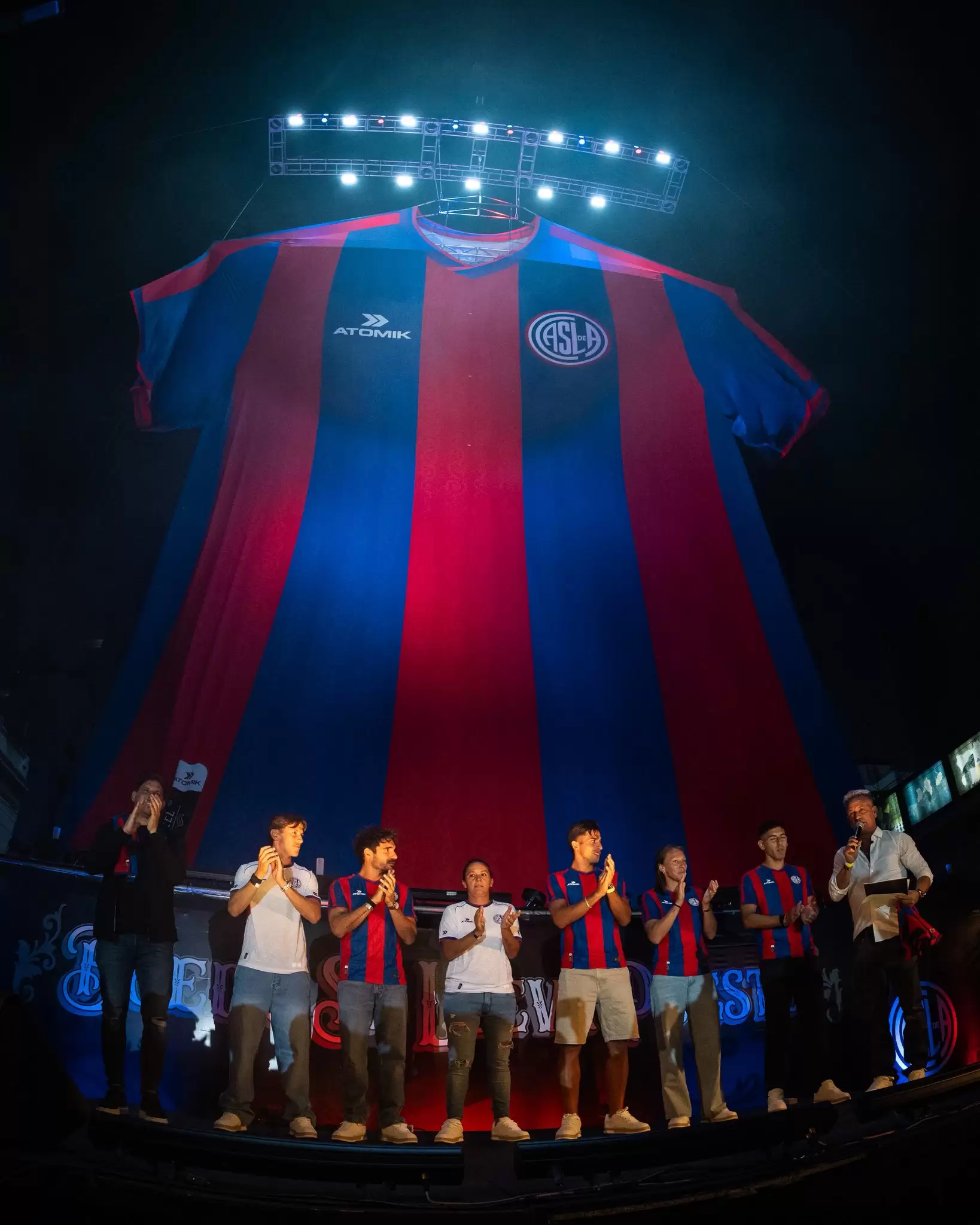 En una noche histórica para el pueblo azulgrana, la icónica esquina de San Juan y Boedo fue el escenario del lanzamiento de la nueva indumentaria de San Lorenzo, diseñada por Atomik. El evento, masivo y abierto a todos los hinchas, transformó el barrio en una fiesta futbolera donde el Ciclón renovó su piel con un diseño que rinde homenaje directo a sus raíces. El momento más emotivo llegó entre fuegos artificiales y el fervor de la gente, cuando se desplegó una camiseta gigante en plena Avenida San Juan —cortada al tránsito especialmente para la ocasión— frente al tradicional Café Homero Manzi, dejando ver los nuevos bastones azulgranas con detalles de fileteado porteño, un guiño artístico a la identidad del club.
