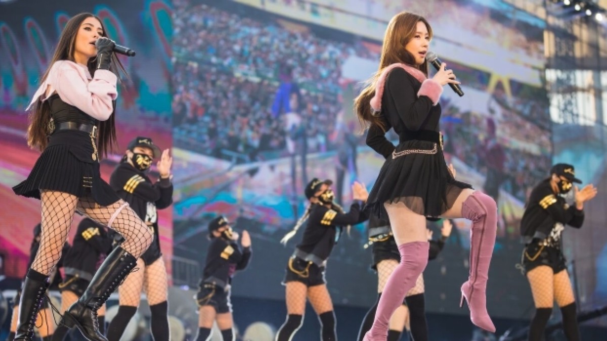 Madison Beer, Miyeon y Soyeon del grupo (G)I-DLE, y Jaira Burns.