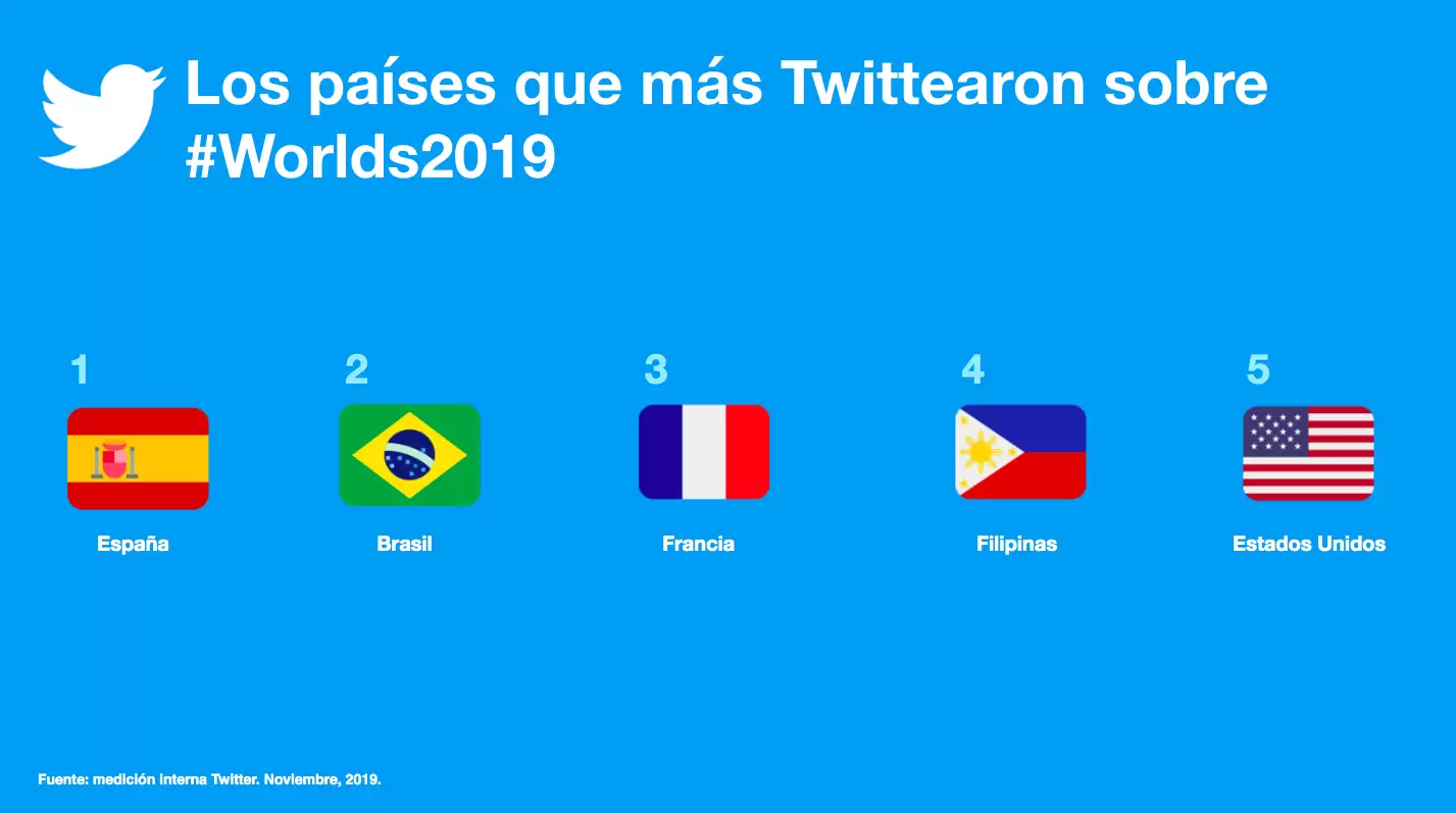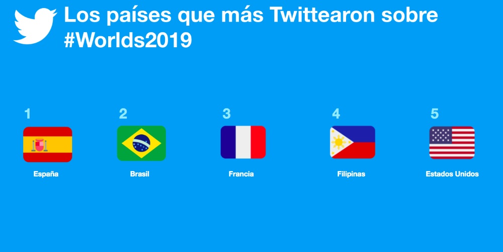 Los países que más Twittearon sobre #Worlds2019