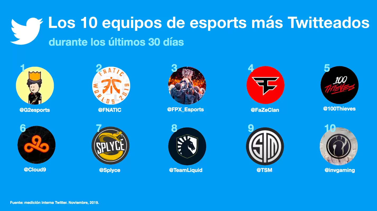 Los videojuegos y especialmente los eSports, son una de las conversaciones de mayor crecimiento en Twitter. A continuación, conoce a los equipos más mencionados de este mes en la plataforma: