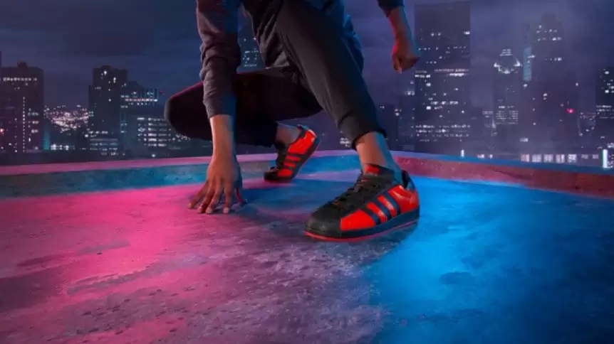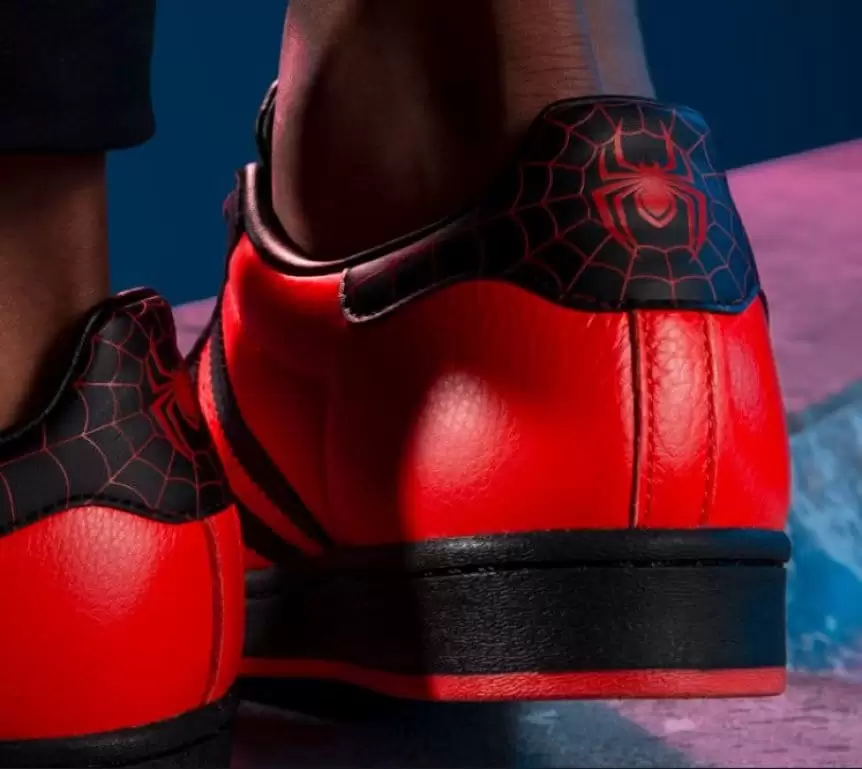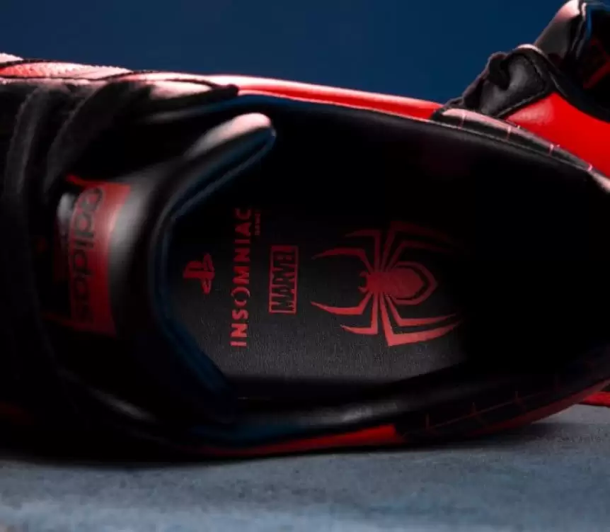 Se trata de un diseño clásico de las adidas Superstar, que tiene los colores negro y rojo, que asemejan el traje. Además, el modelo de zapatillas tiene también algunos detalles como el ícono de la PlayStation y el logo del “Hombre araña”.