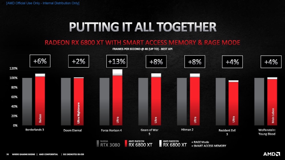 Las tarjetas gráficas AMD Radeon RX Serie 6000 se basan en la innovadora arquitectura de juego AMD RDNA™ 2 – un nuevo referente para consolas, PC, portátiles y dispositivos móviles de próxima generación – proporcionando hasta el doble de rendimiento y un desempeño por watt hasta 54% superior en comparación a las tarjetas gráficas de AMD basadas en RDNA.