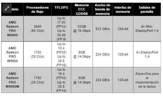 Esta línea está construida sobre la reconocida arquitectura AMD RDNA 2, la cual es la base de la próxima generación de PC de alta potencia, laptops y muchas de las consolas de videojuegos actuales. La nueva oferta de productos incluye la AMD Radeon PRO W6800, la tarjeta gráfica para estaciones de trabajo con arquitectura AMD RDNA más rápida de la historia1. Asimismo, la Serie presenta la Tarjeta Gráfica AMD Radeon PRO W6600, cuidadosamente diseñada para flujos de trabajo de rendimiento ultra alto. Además, esta nueva línea ofrece la GPU AMD Radeon PRO W6600M, elaborada para potenciar estaciones de trabajo móviles profesionales.
