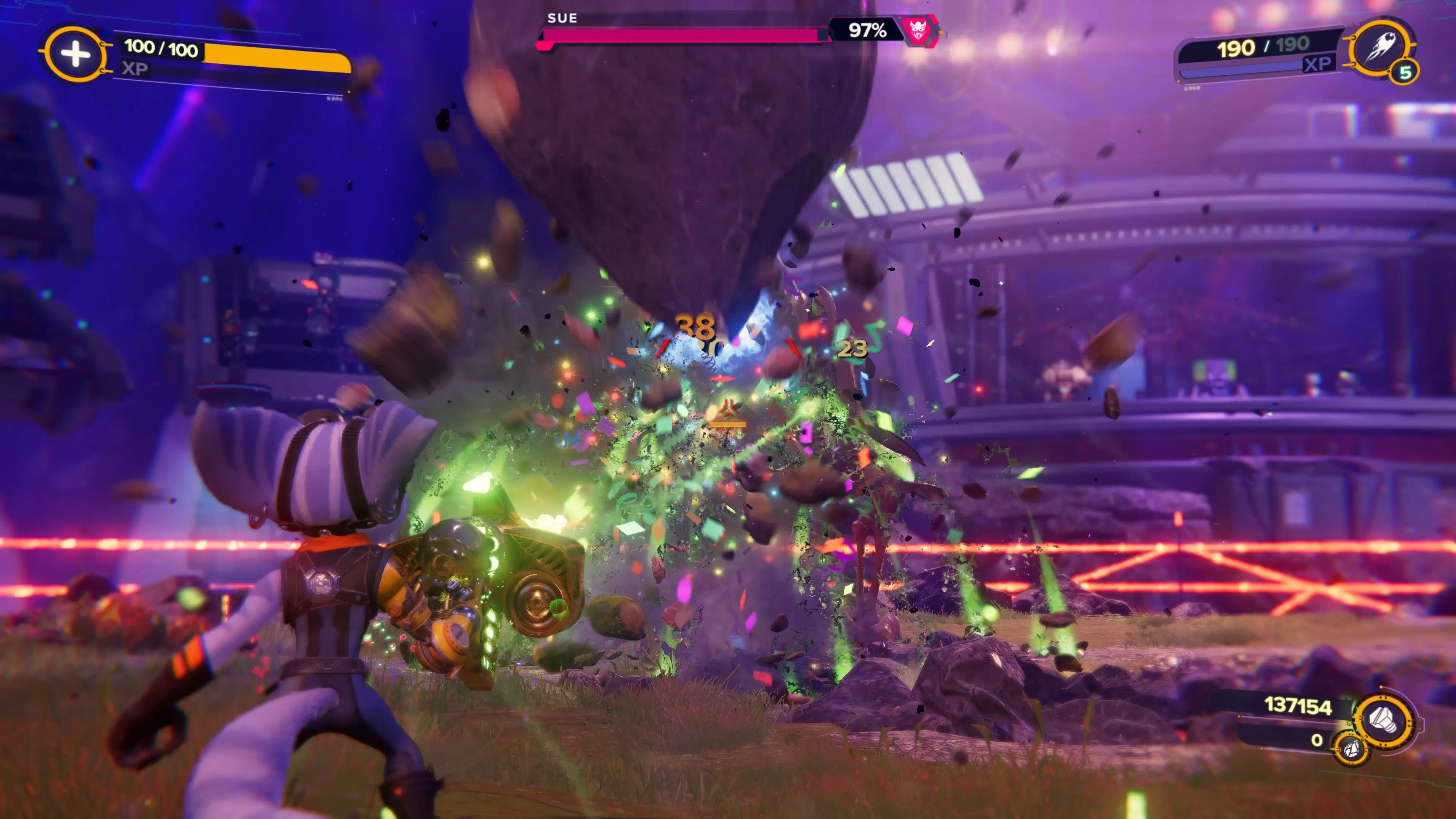 Como es costumbre con los juegos de Insomniac, a uno le esperan una buena cantidad de mundos y un nivel de cuidado en la presentación visual increíble. Acompañados de las nuevas técnicas que incluyen el sistema de “Strand Hair” ya utilizado en la versión de PlayStation 5 del Spider-Man: Miles Morales y la tecnología de Ray-Tracing que le da un nivel de precisión visual equivalente a una producción de cine. Este es en efecto uno de los mejores, o quizás el mejor juego a nivel visual que hay en el mercado y un despliegue de tecnología pocas veces visto.