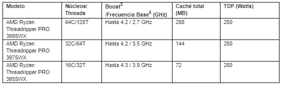 Especificaciones de productos: AMD Ryzen Threadripper PRO