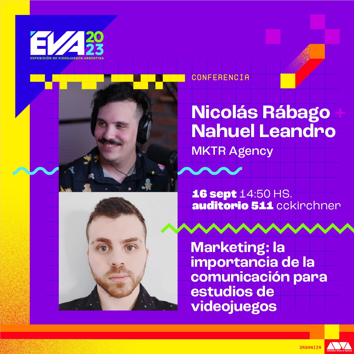Desde nuestro lado, tenemos el agrado de que Nahuel Leandro y Nicolás Rábago, marketing managers de nuestra pata gamer de la agencia, estén presentes el sábado 16 de Septiembre desde las 14:50 brindando una charla sobre marketing de videojuegos en la Sala 511.