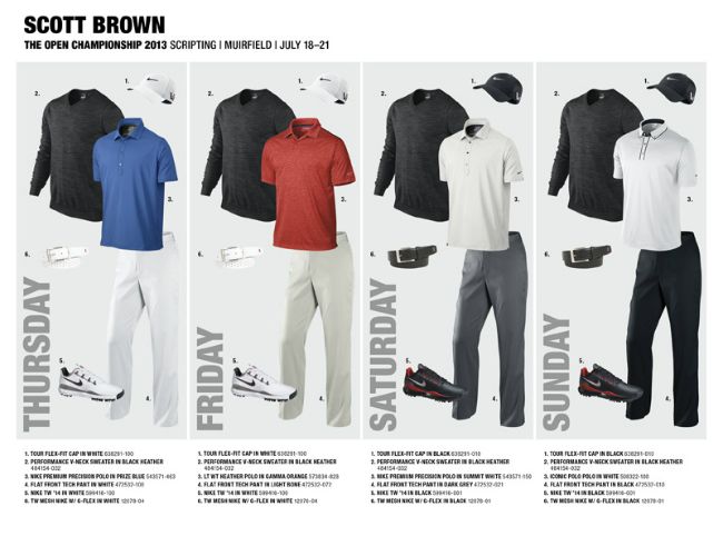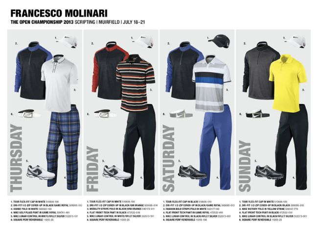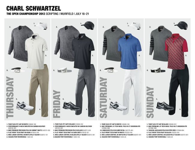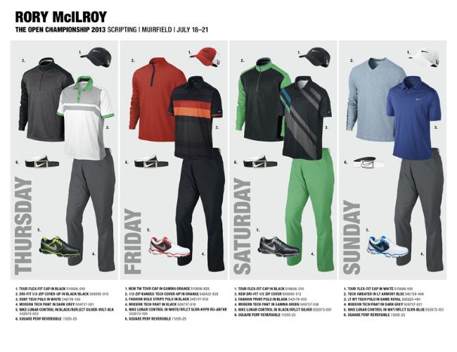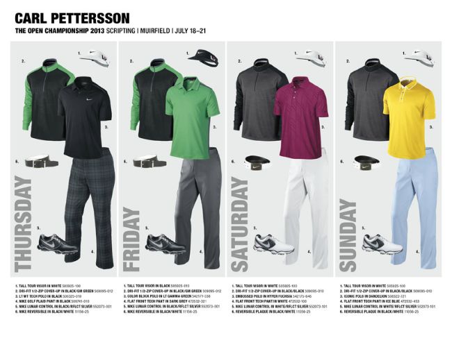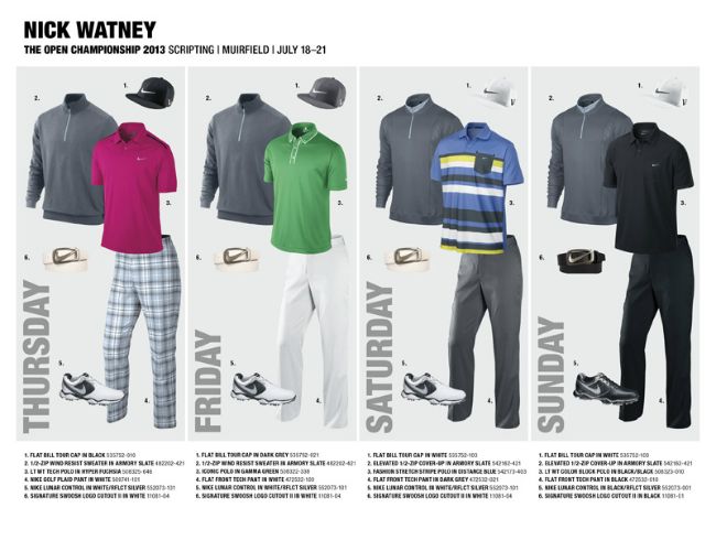 Los golfistas que ya tienen su look son: Scott Brown, Oliver Fisher, Russell Henley, Scott Jamieson, Rory McIlroy, Francesco Molinari, Thorbjorn Olesen, Carl Pettersson, Charl Schwartzel, Kyle Stanley, Nick Watney and Tiger Woods.
