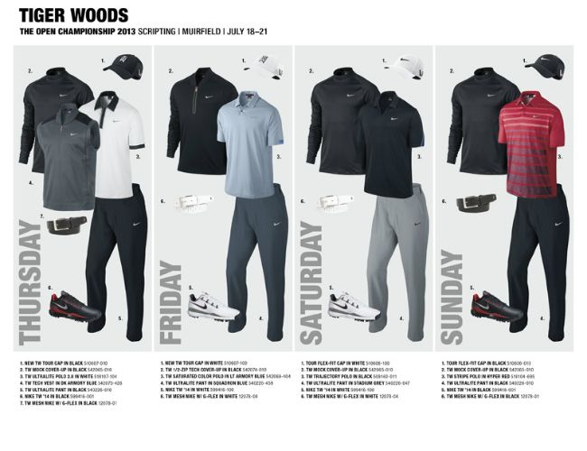 Todos los productos son parte de la actual colección de Nike 2013, y obviamente los de Tiger Woods pertenecen a su propia línea.