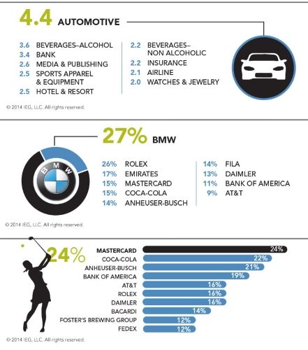 A través de un informe de la consultora IEG, se conocieron los valores mundiales relacionados con los patrocinios y el apoyo de las empresas al golf en todo el mundo. Con respecto a 2013, este 2014 tuvo un 3,1% más de inversión, alcanzando los 1650 millones de dólares.