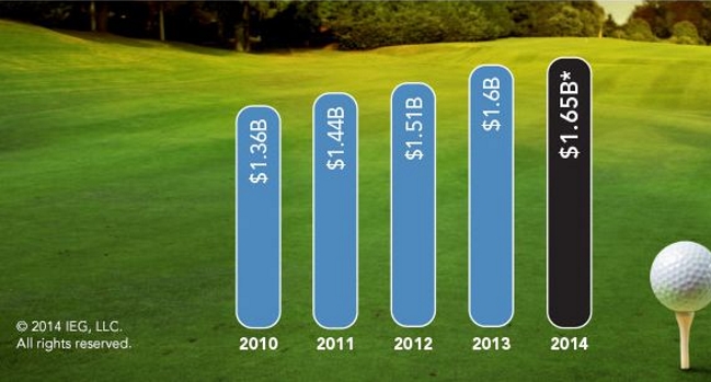 A través de un informe de la consultora IEG, se conocieron los valores mundiales relacionados con los patrocinios y el apoyo de las empresas al golf en todo el mundo. Con respecto a 2013, este 2014 tuvo un 3,1% más de inversión, alcanzando los 1650 millones de dólares.