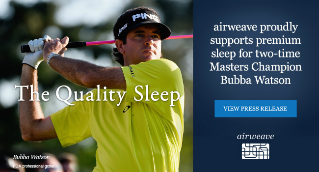 Luego de ganar por segunda vez el Masters de Augusta, Bubba Watson disfruta de las mieles del éxito. Por ello, Watson y Airweave anunciaron esta semana, la firma de un vínculo por el cual Bubba se convierte en embajador de la marca.
