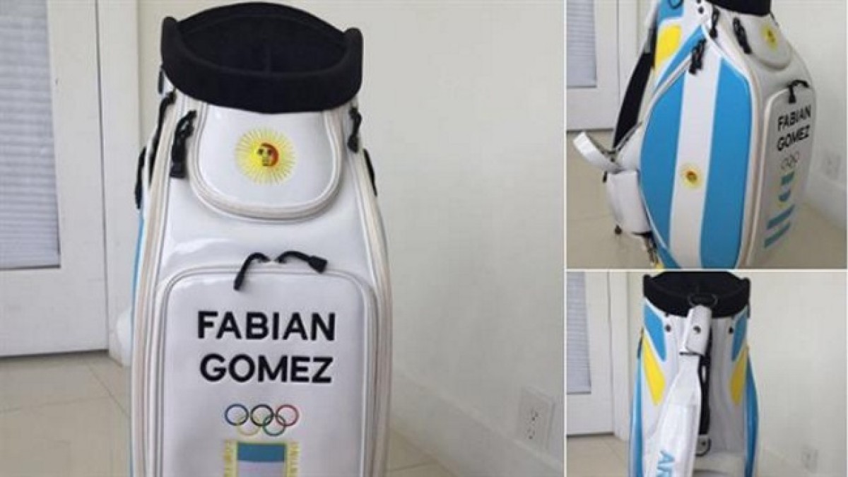 Fabián Gómez y Emiliano Grillo mostraron sus bolsas de palos especiales para el golf olímpico