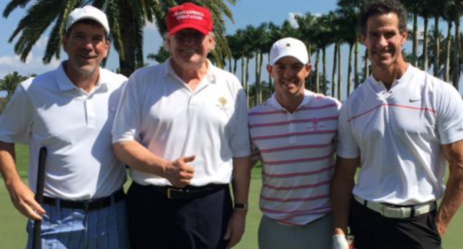 A pesar de continuar lesionado de sus costillas, el afamado golfista irlandés hizo una excepción esta semana y fue a jugar una partida de 18 hoyos junto con el presidente de los Estados Unidos, en su campo de golf personal, el Trump International ubicado en Florida.