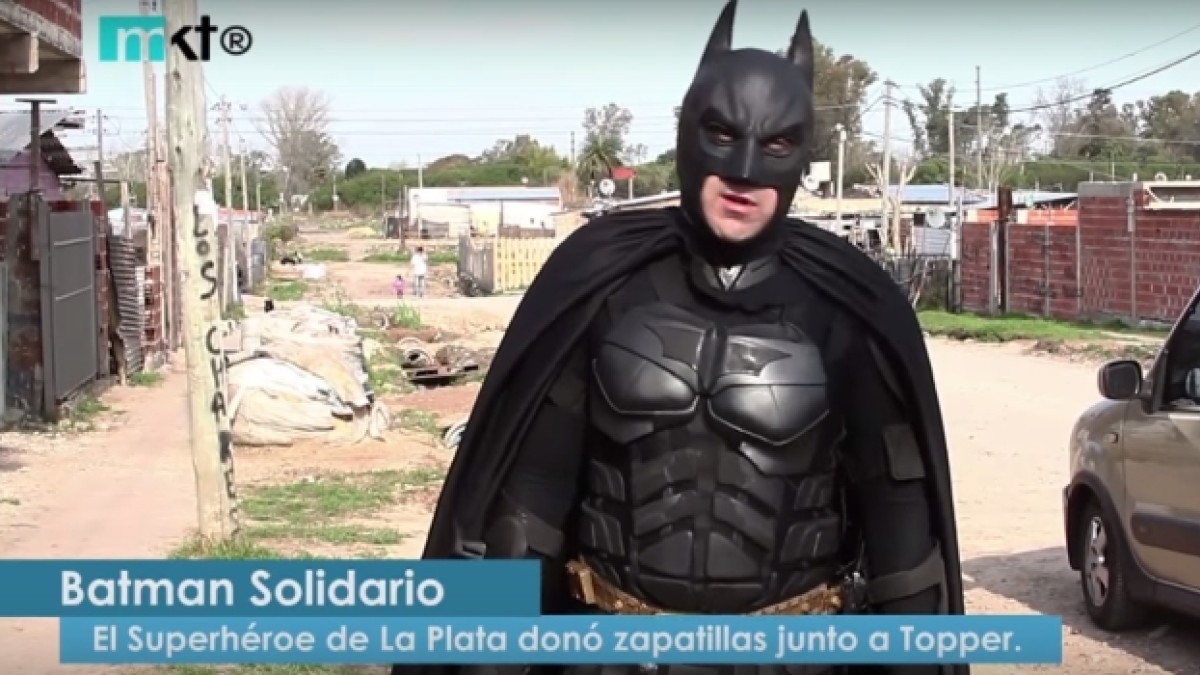 Momentos Mkt® Topper donó zapatillas junto a Batman Solidario en La Plata Lunes 31 de Agosto de 2015 Video Ir a la versión original de la nota »