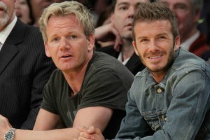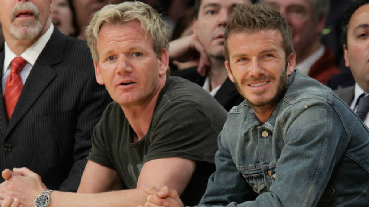 En la foto, se lo ve a Beckham junto a su amigo cheff, Gordon Ramsay.
