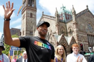 Y Nike, tampoco dejó pasar mucho tiempo para salir a dar su apoyo, pero además, “capitalizar” la decisión del jugador. Hace pocos días, Collins estuvo en el desfile del orgullo gay en Boston luciendo una de las remeras que es parte de esta colección llamada “Be True”, que tiene los colores de la bandera del orgullo gay.La pregunta que surgió en aquel momento, era que pasaría con la NBA, y con los patrocinadores del jugador. Bueno, rápidamente la NBA, a través de su comisionado Stern, apoyó al jugador. Solo quedaba saber qué pasaría con las empresas.