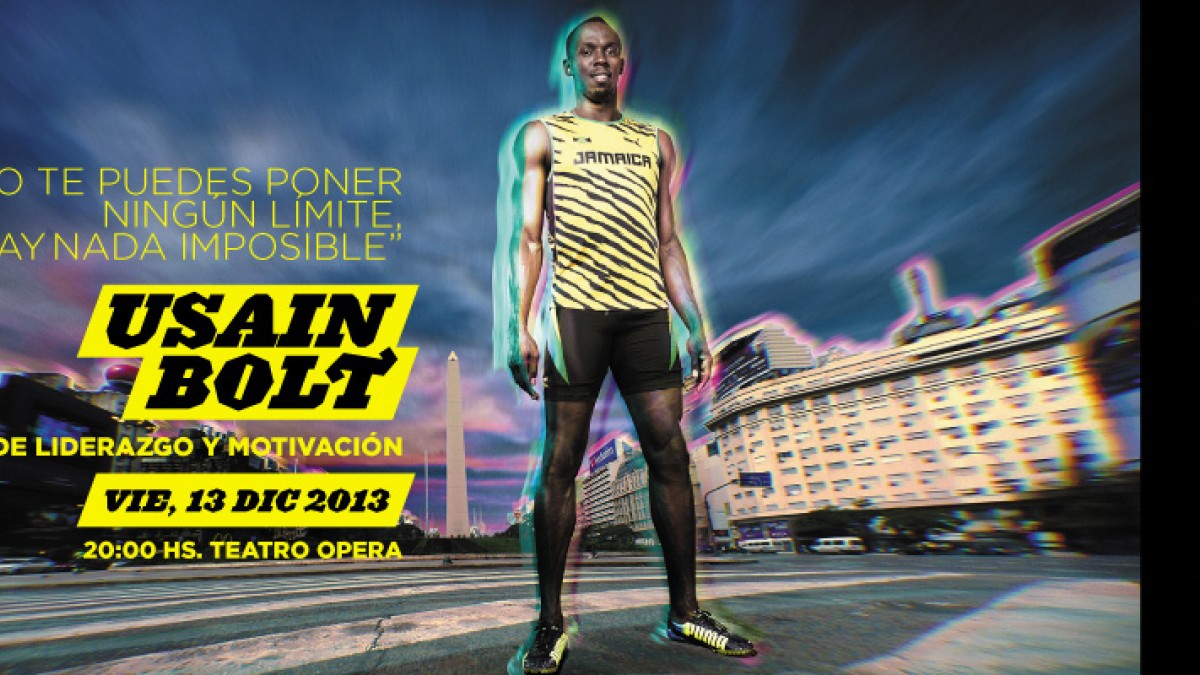 Bolt tiene el actual récord mundial en los 100 metros con 9,58’’, así como también seis medallas de oro en dos Juegos Olímpicos y múltiples campeonates mundiales.Bajo el lema “No te puedes poner ningún límite. No hay nada imposible” el velocista jamaiquino hablará ante todos los que adquieran su entrada, con valor desde $150 hasta $850, el viernes 13 de diciembre a las 20hs en el Teatro Ópera de Capital Federal. Será una oportunidad única para ver de cerca a uno de los mejores atletas de la historia moderna, conocer su mentalidad y ver cómo se prepara para sus competencias.