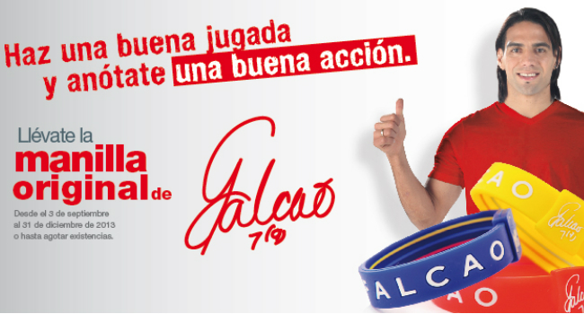 Las pulseras se podrán encontrar en tres colores, amarillo, azul y rojo. Estarán disponibles en 253 puntos autorizados y tendrán un valor de 9.000 pesos colombianos. El diseño cuenta con el nombre de FALCAO, la firma del jugador, la bandera interna de Colombia y la leyenda “no sólo fútbol” y la figura de ‘el tigre’ en holograma.