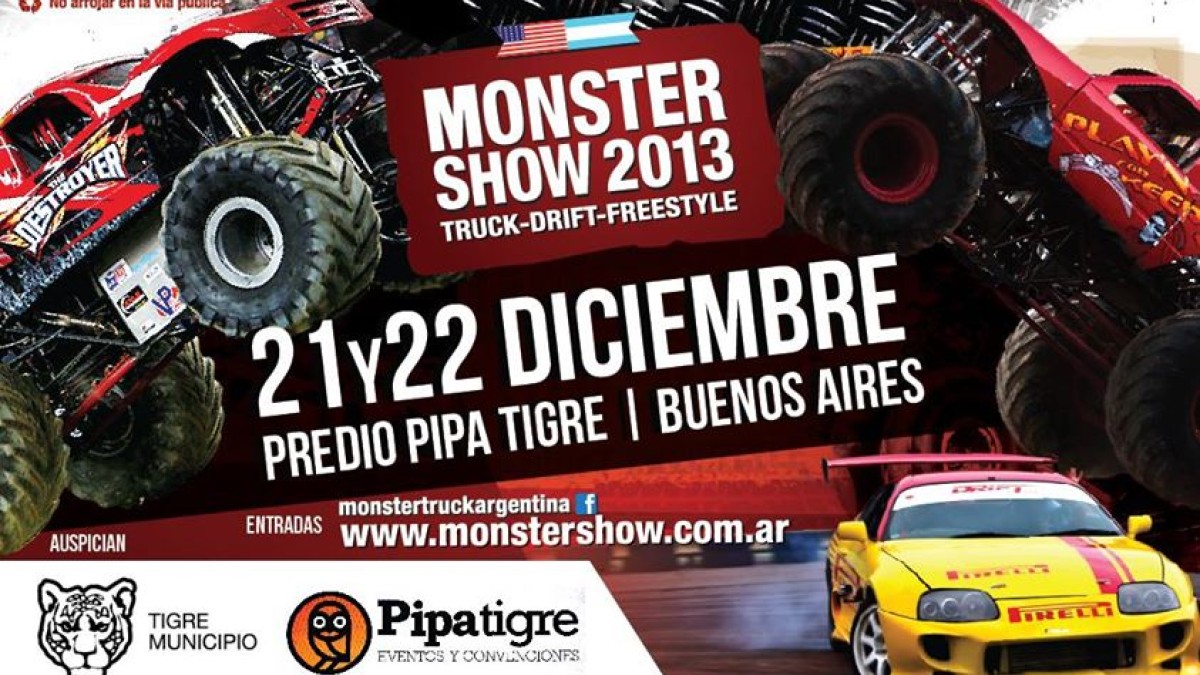 En el complejo Pipa Tigre de la zona norte del Gran Buenos Aires, se realizará el 21 y el 22 de diciembre la exhibición conocida como Monster Show, que combina freestyle con autos todoterreno, motos y camiones.