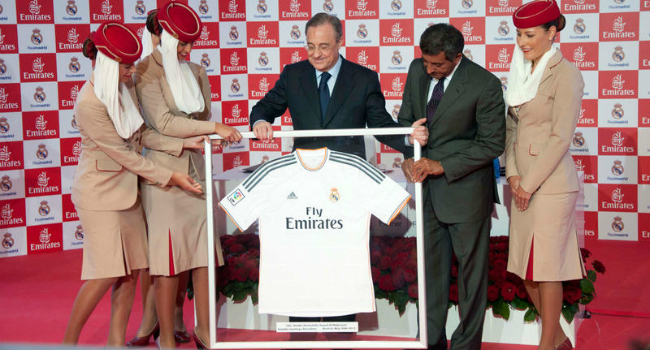 El Real Madrid C. F. y Emirates presentaron el nuevo acuerdo de patrocinio entre ambas entidades y la camiseta de la temporada 2013/14, que llevará el nombre de la compañía aérea. Emirates se convierte en el patrocinador oficial durante las próximas cinco temporadas. La presentación tuvo lugar en el palco de honor del Santiago Bernabéu y estuvo presidido por Florentino Pérez y H. H. Sheikh Ahmed bin Saeed Al Maktoum, presidente y Chief Executive de Emirates Airlines y Emirates Group.
