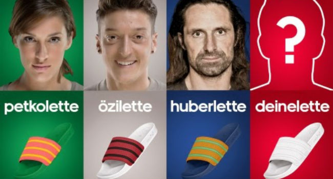 Por eso, adidas Alemania busca relanzar el emblemático modelo, y junto a grandes embajadores como los futbolistas Mesut Özil, Bastian Schweinsteiger, el rapero Liquit Walker y la tenista Andrea Petkovic, invita a los consumidores a que diseñen su propia adilette.
