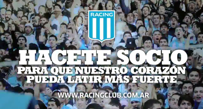 Como novedad, se incorpora la posibilidad de hacerse socio a través de la web oficial (www.racingclub.com.ar/asociate/), sin la necesidad de acercarse a un Centro de Atención al Socio, por lo que se apunta a sumar a nuevos socios del interior del país, por eso se remarcan los 4 puntos cardinales del país que son citados en una de las canciones más populares de la hinchada racinguista.